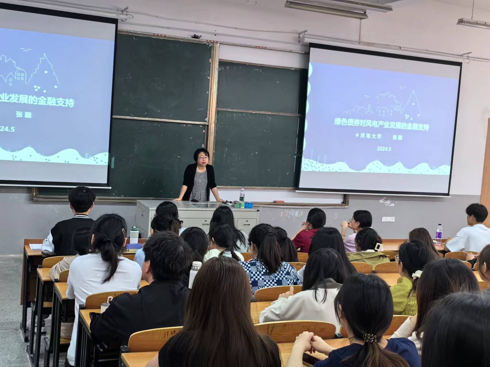 为了促进教育资源共享,加深同学们对本专业课程设计的理解以及丰富同学们在课余时间对金融市场的认知,2024年5月8日下午,财经学院邀请到河海大学商学院张颖教授为21财管学生带来一场以“绿色债券对风电产业发展的金融支持”为题的讲座。