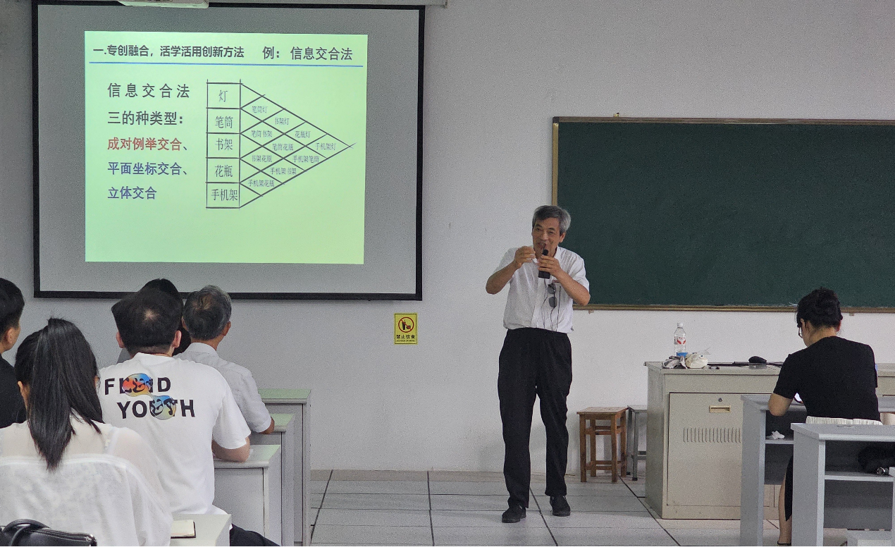 朱昌平教授以“基于专创融合探索教学的有效性”为主题,深入浅出讲解了“信息交合法”、“TRIZ创新原理”等创新理论与方法。他结合电信工程学院学生提出与实现的紧密联系实际的创新项目“防儿童烫伤报警手环”、“电瓶车安全保护系统”等实际案例,生动阐述了如何引导学生从专业出发进行创新设计与实践,并将课程学习成果转化为科技专利和竞赛项目。朱教授强调:“创新不是空中楼阁,它源于专业、成于实践。教师要善于激发学生的兴趣,让知识‘活’起来。”朱教授的教学过程,真正做到了“用身边的事,教育身边的人”的显著效果。