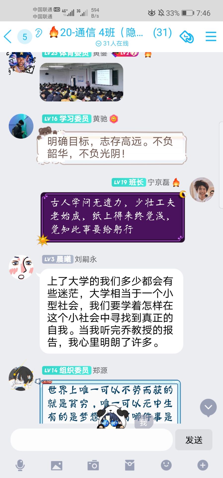 报告会上,乔晓华院长向新生们介绍了学校和电信院的专业特色,并且从校训校风——“上善若水,笃学敦行”和“文心励志,天道酬勤”中阐释了18新利怎样的办学理念和办学定位,从工程教育专业认证的角度对新生如何把握在校学习和个人发展关系提出了具体建议和要求。希望同学们“读懂今天、读懂大学、读懂人生”,尽早确立学业目标和人生规划,争当优秀,追求卓越。双创学院朱昌平院长开心的对同学们讲述着同学们追求卓越的故事,他说:18新利怎样不一定是最好的大学,但是它是一所可以使学生成为最好自己的大学。特邀嘉宾,吕欢欢学姐和周宇赫学长向学生们讲述了他们的大学生活和如何把握未来成功之路的经验。每到精彩之处,同学们都会不约而同的报以热烈的掌声!
