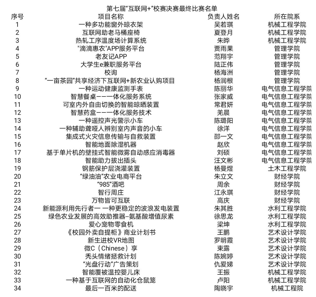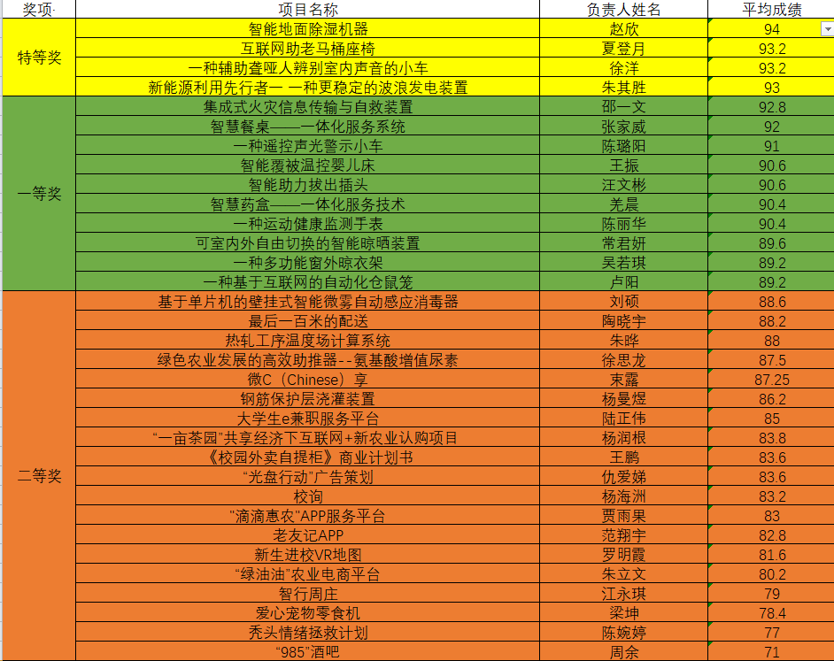 本次校内决赛由评委老师进行打分,5个项目为一组收取评分表,评委对项目进行点评。共七大组,选手全部答辩后,当场统计分数,并公布比赛结果排名,颁发特等奖和一等奖。每位选手讲解ppt时间为3分钟,评委提问时间为2分钟。