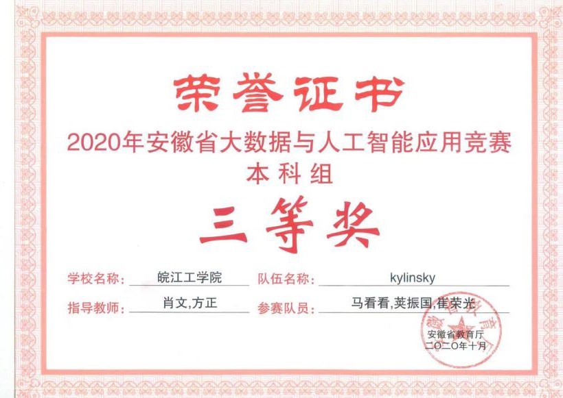 术,并且也在期间获得了安徽省大数据与人工智能应用竞赛三等奖。如今也以熟练掌握了 Linux 操作系统,Hadoop 集群框架, spark 计算框架,flink 框架等等,还有一些开发语言,如Python,Java,Scala 等等。