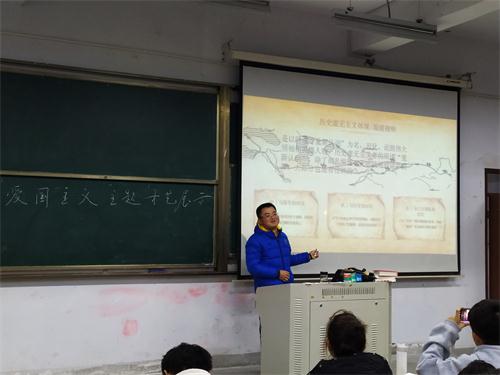 2020级水文2班刘岳超、韦可忠、董帮飞 、梁辉辉 、冯振、张博尧 、王建文 等同学,结合思修课程,通过读书研讨,对历史虚无主义的部分观点进行剖析批判,制作成PPT,于11月24日,以《关于信仰的力量》为题向同学们介绍观点。图为主创者刘岳超同学在讲解展示。