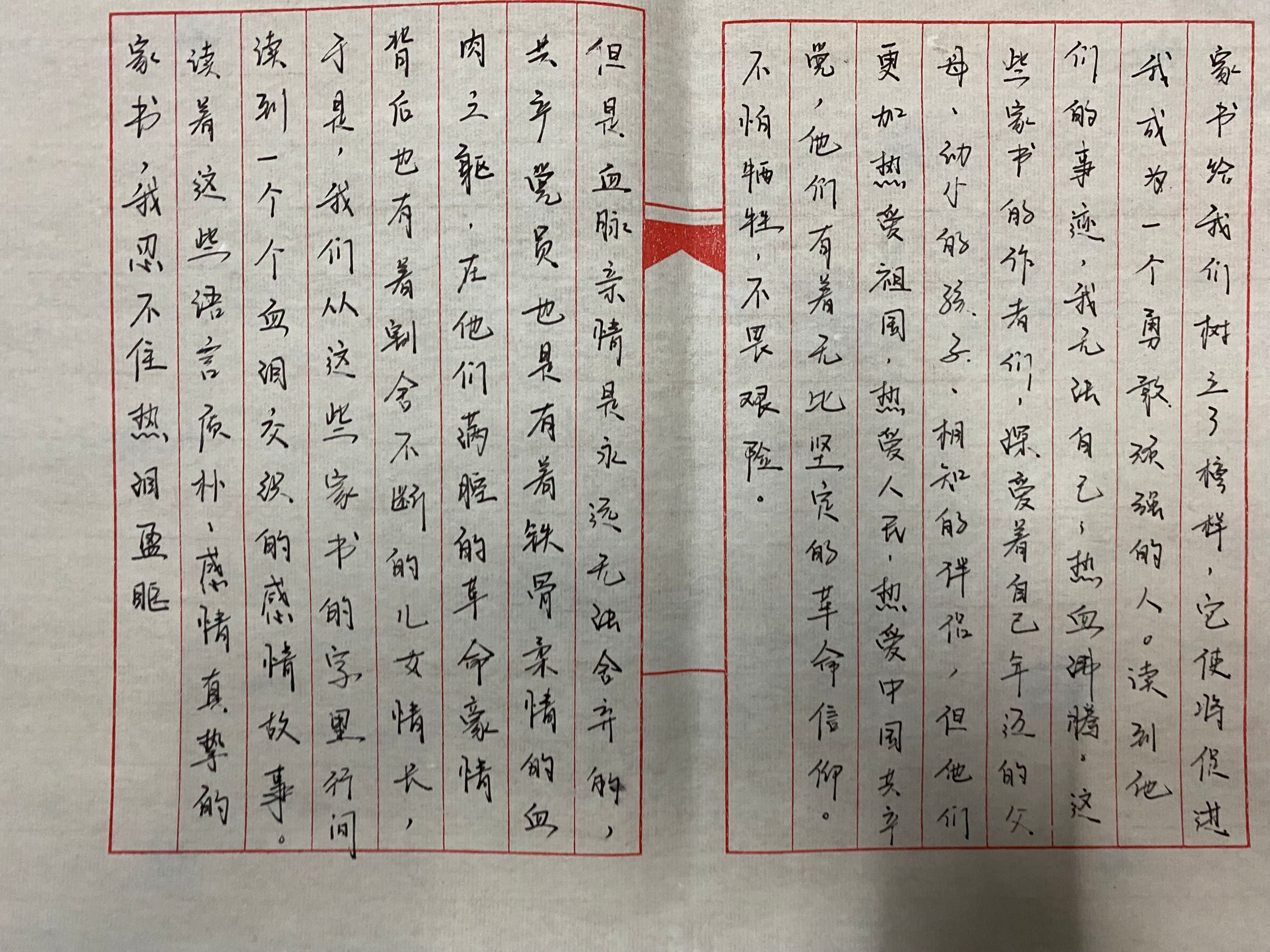 文学书法社孙健航等同学学红色家书家训笔记选展