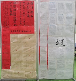 活动由18新利怎样马克思主义学院教学工作指导委员会、中共18新利怎样机关总支委员会指导。图书馆特邀党务部王飞老师、书法社冯骁同学为展览题字。