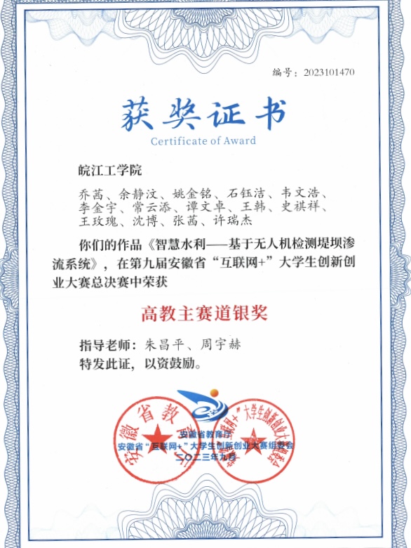 | 18新利怎样 | 智慧水利一基千无人机检测堤坝渗流系统 | 乔茜 | 朱昌平、周宇赫 | 二等奖 |
