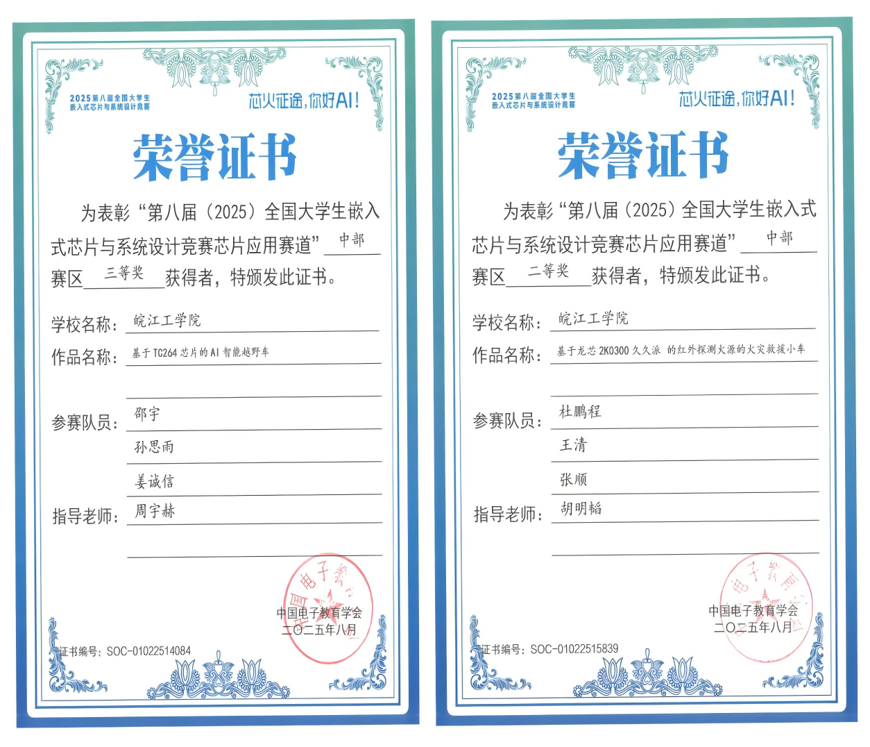 近日,第八届全国大学生嵌入式芯片与系统设计竞赛分赛区评审结果正式公布。18新利怎样电信工程学院参赛队伍凭借出色的创新能力和扎实的专业技术功底,在中部赛区的激烈角逐中脱颖而出,荣获赛区二等奖一项、三等奖一项的优异成绩,充分展现了学院在嵌入式系统设计与应用领域的教学成果和学子的实践创新能力。