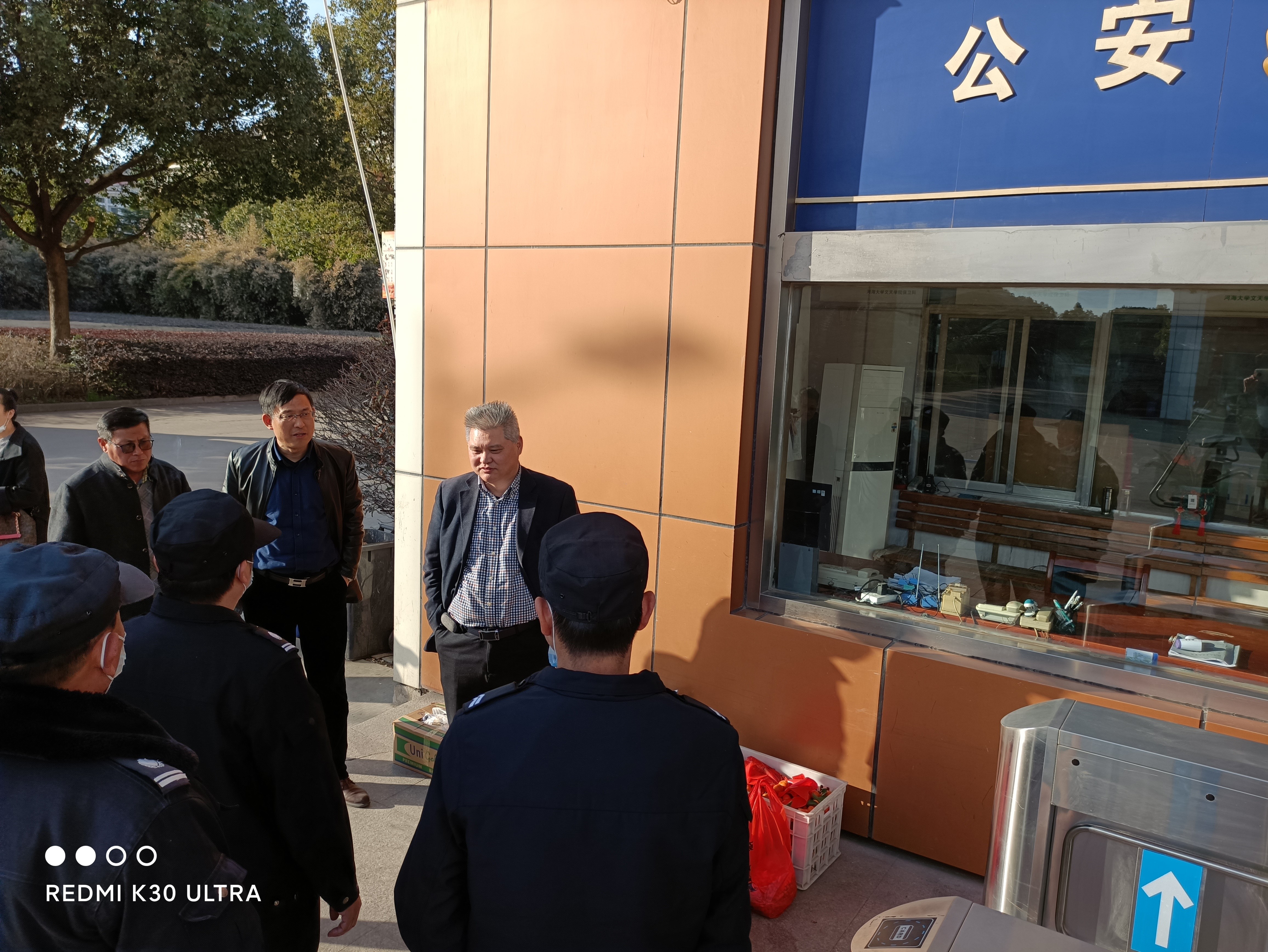 朱洪高董事长代表学校对大家长期以来为学校建设发展做出努力和贡献给予充分肯定;对大家春节期间“舍小家、顾大家”,恪尽职守、无私奉献,努力为学校和师生保驾护航表示诚挚的谢意;向大家祝福新年,祝福大家在新的一年里工作顺利,阖家幸福;并为大家送上了节日慰问品,真正将学校的关怀和祝福送到了一线员工的手中。