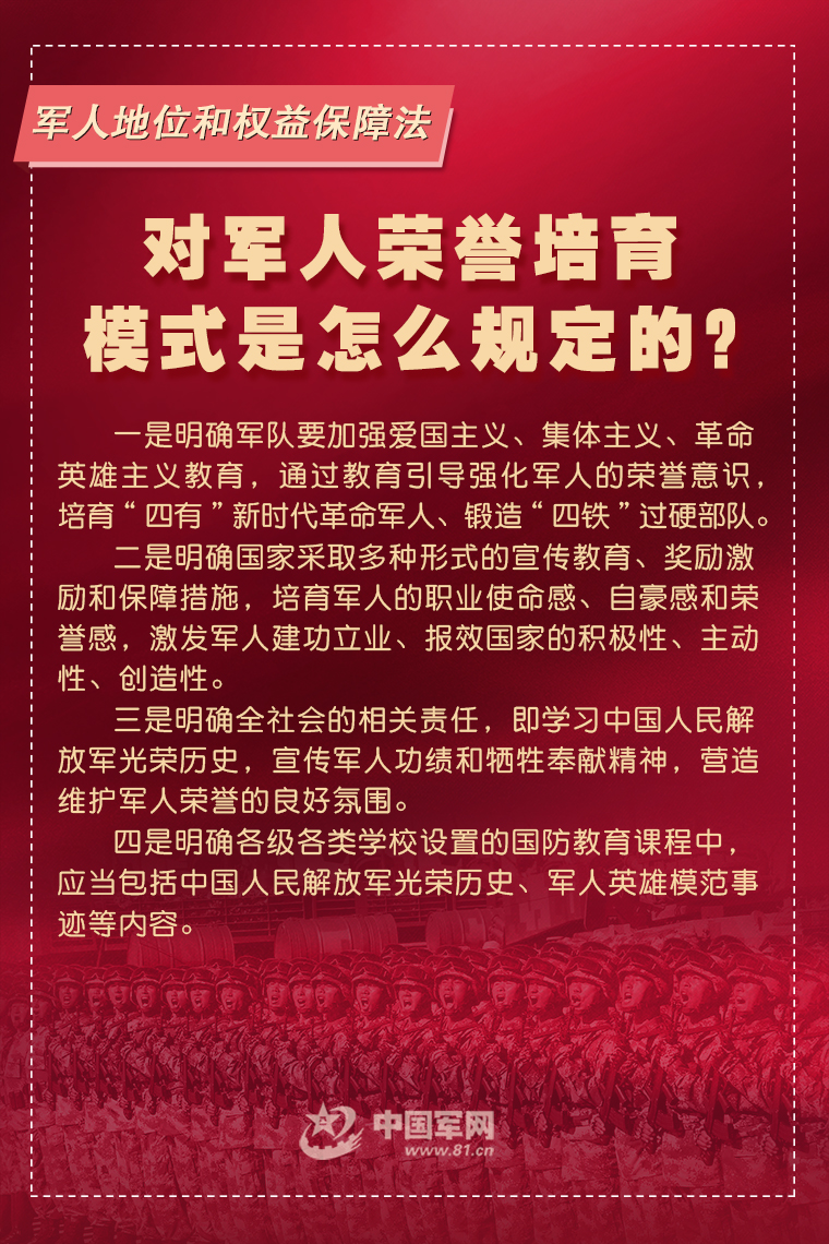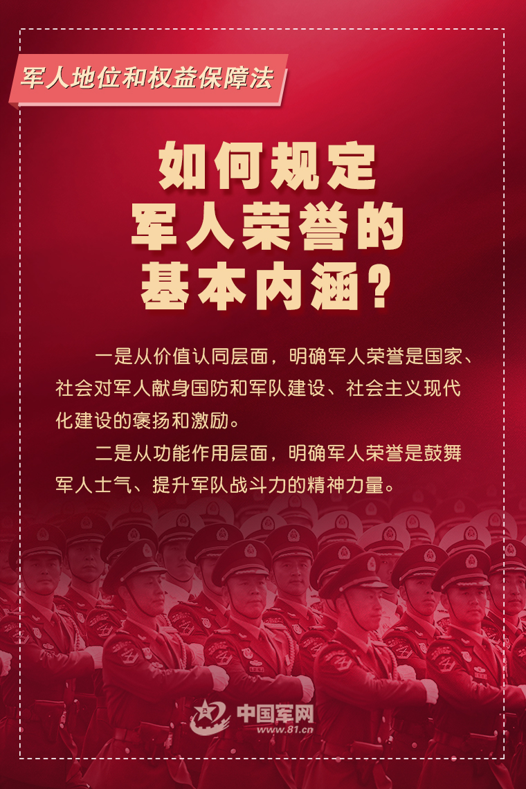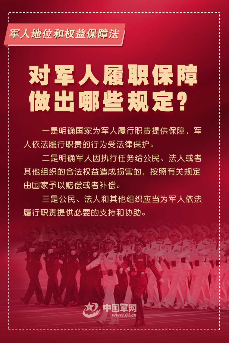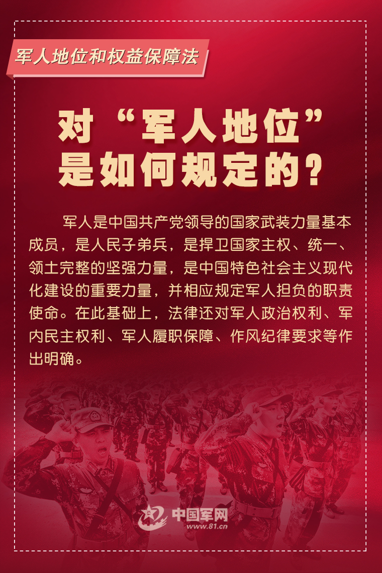 6月10日,十三届全国人大常委会第二十九次会议表决通过《中华人民共和国军人地位和权益保障法》,国家主席习近平签署第八十六号主席令予以公布,自2021年8月1日起施行。这是军人地位和权益保障的基础性、综合性法律,是深化国防和军队改革的重要成果。这部法围绕军人地位和权益保障的基本原则和基本制度作出了哪些规范?中国军网推出专家系列解读,阐释重要规定内涵和深层考量,快来一起看看吧。