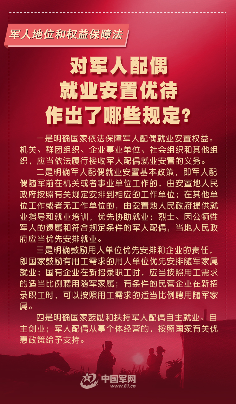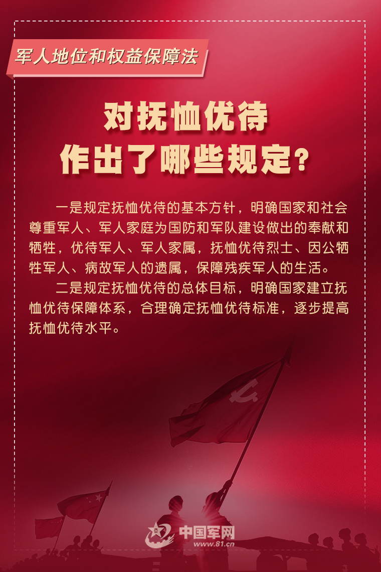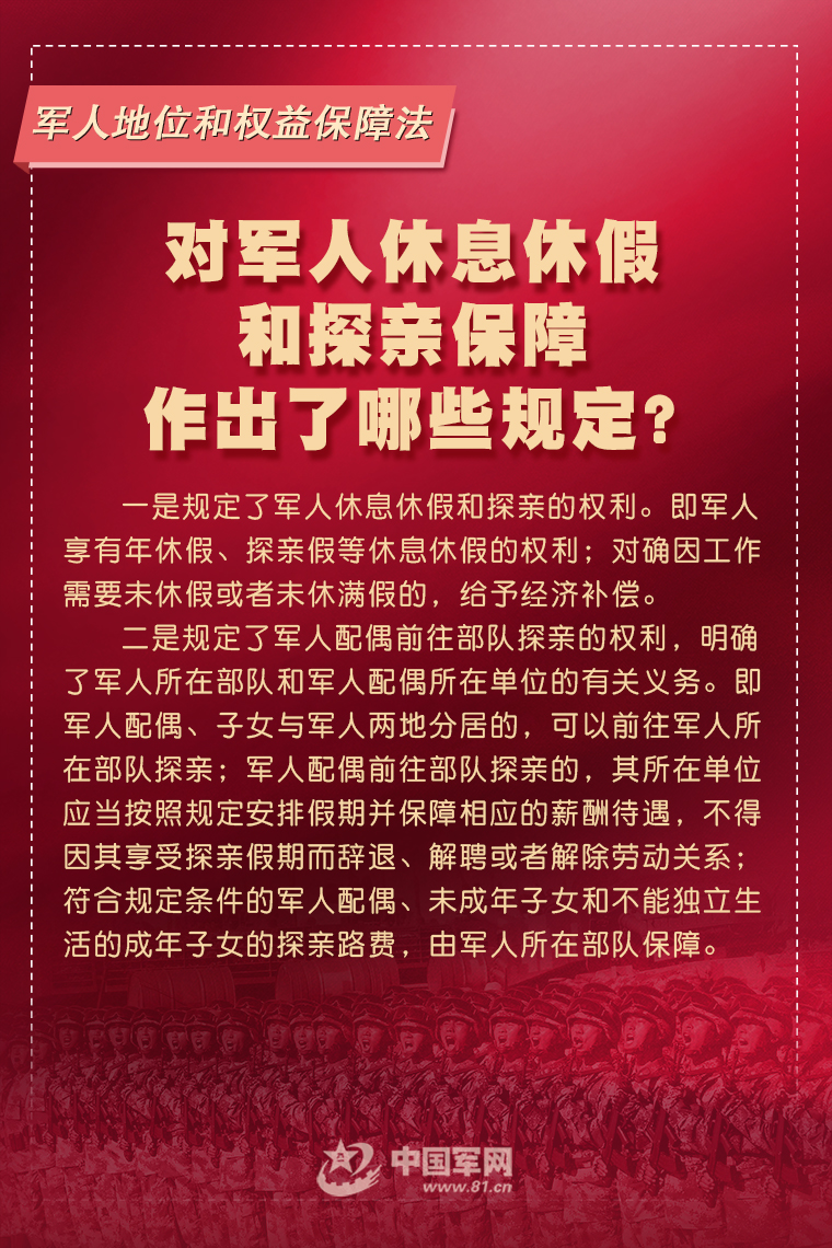 6月10日,十三届全国人大常委会第二十九次会议表决通过《中华人民共和国军人地位和权益保障法》,国家主席习近平签署第八十六号主席令予以公布,自2021年8月1日起施行。这是军人地位和权益保障的基础性、综合性法律,是深化国防和军队改革的重要成果。这部法围绕军人地位和权益保障的基本原则和基本制度作出了哪些规范?中国军网推出专家系列解读,阐释重要规定内涵和深层考量,快来一起看看吧。