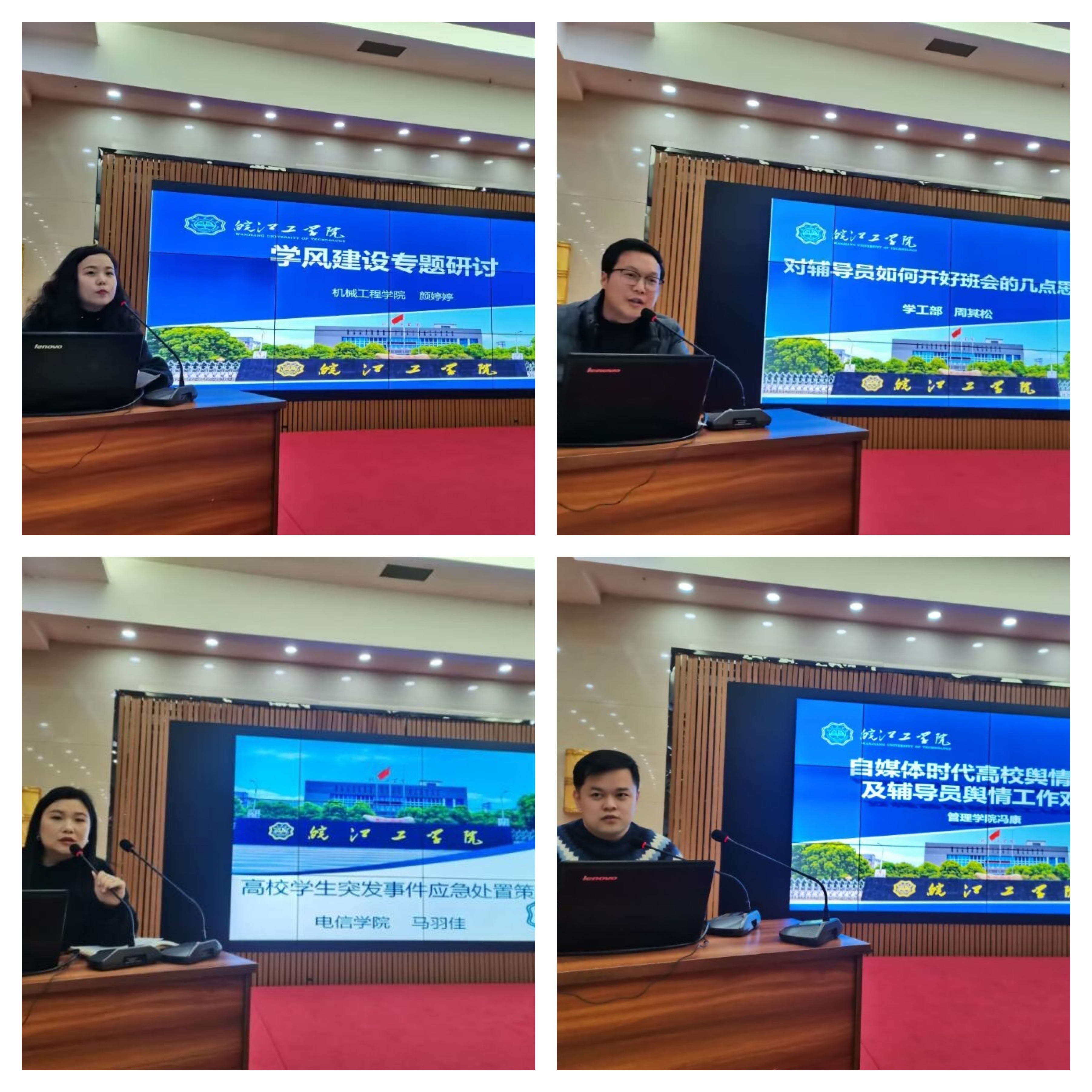 在研讨会上,参会人员针对培训内容结合自身工作实践和思考体会踊跃发言,积极献言献策。朱洪高在听取大家的研讨交流后指出,学生工作是校园建设的头等大事,学生发展好了才有学校发展,学生工作才能落到实处。抓学风建设要密切联系合格评估的内涵,要深入课堂、深入宿舍、走到学生当中去,做好自身表率,用行动感染学生,引导他们养成优秀的行为习惯,共同提升班风、学风和校风。我们要努力做好思政育人,更要做好课程思政,完成立德树人、铸魂育人的时代使命。