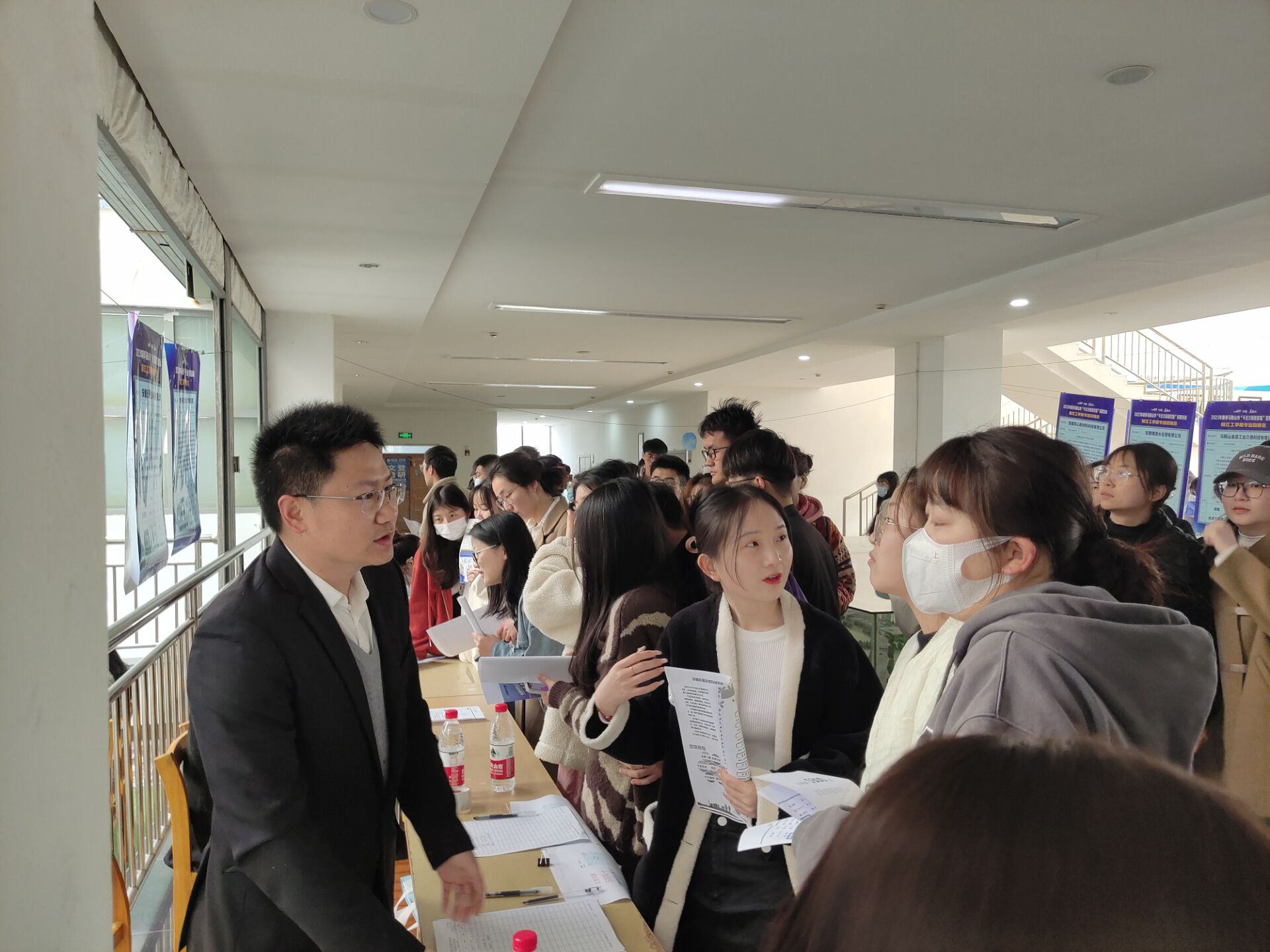 为了搭建用人单位与毕业生双向选择平台,保障毕业生高质量就业,3月4日上午,2023年马鞍山人才月“千企万岗进校园”专场招聘会在18新利怎样图书馆拉开帷幕。市人社局、市人力资源管理服务中心相关同志,副校长侯进元,学生工作部常务副部长江春明,副部长汪朱华和毕业班辅导员莅临招聘会现场指导工作。