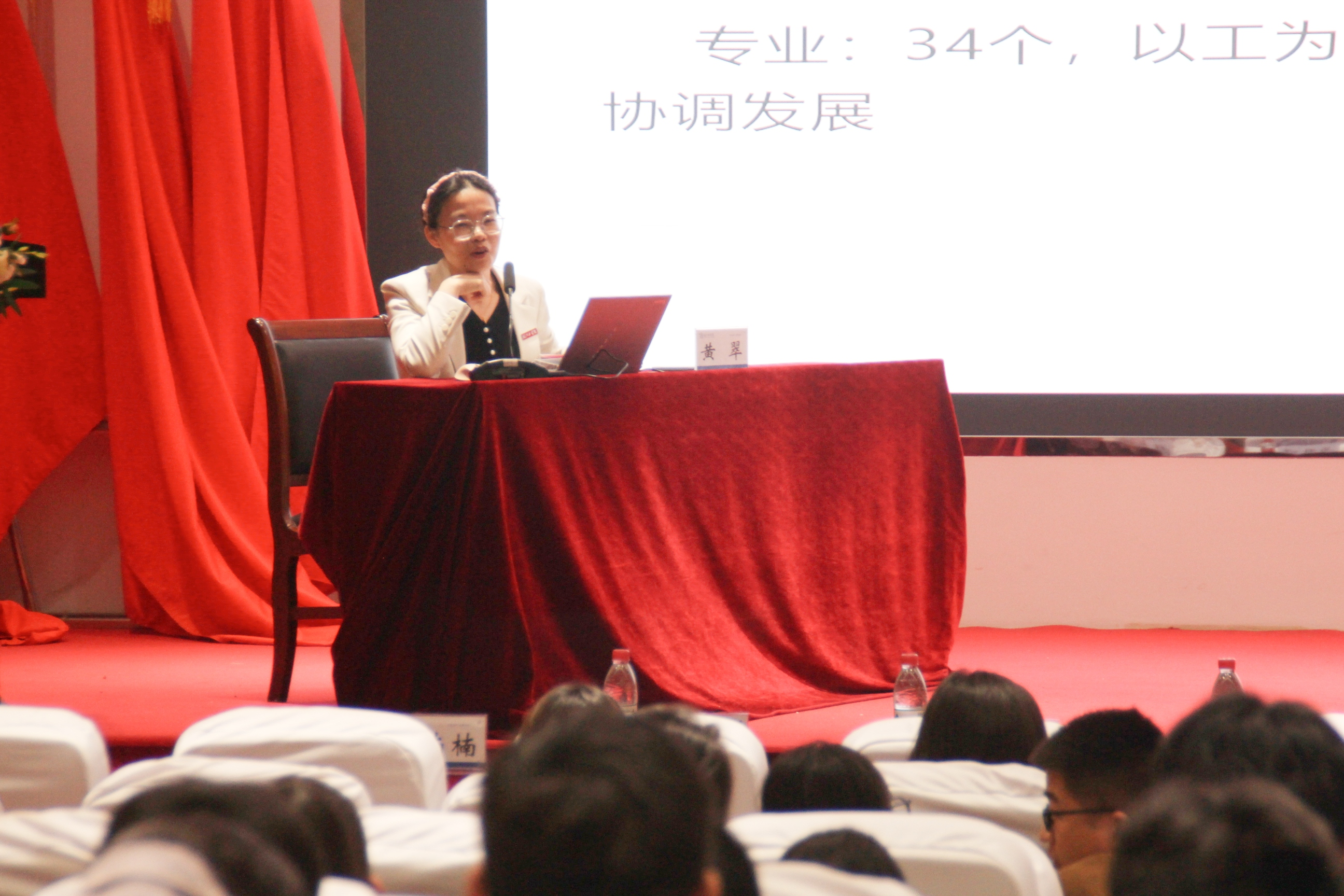 会议的最后,黄翠主任给在场的学生干部代表做合格评估应知应会培训会。她从“合格评估是什么”,“为什么开展合格评估”以及“怎样迎接合格评估”三个方面开展培训。她指出,良好的学风是合格评估其中一项重要指标,大致包含校园氛围、教育载体、学生管理和形象表现四个方面,同学们不仅要在课堂上遵守纪律,课下自主学习,还要积极参加学校组织的各项课内外科技文化活动,积极参加体育锻炼,展现我校学生充满活力、积极进取的精神风貌。
