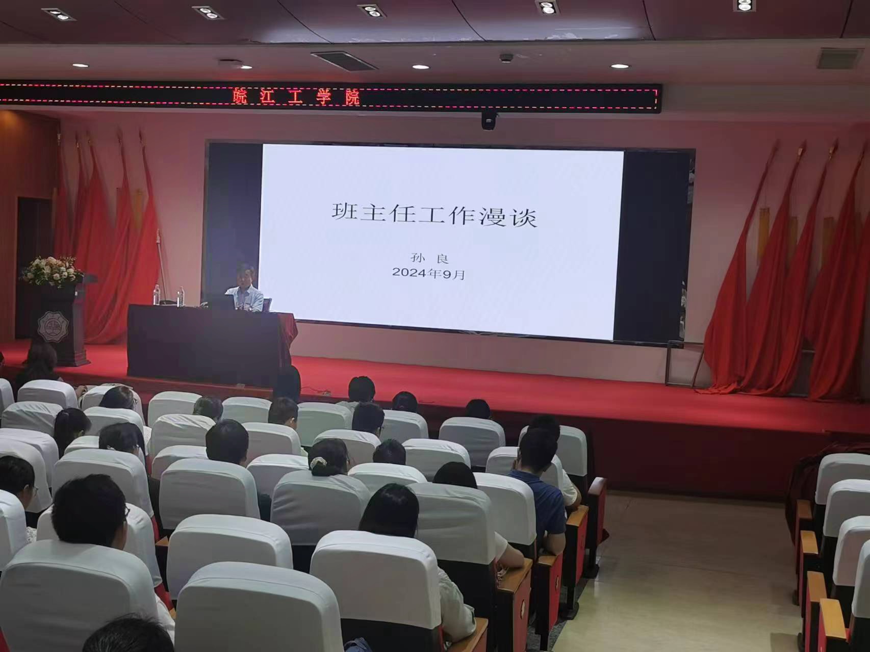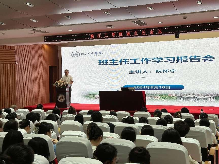 为了积极响应党的教育方针,深刻领会并贯彻党的二十届三中全会精神,进一步强化立德树人的教育目标,促进学生思想政治教育管理工作的创新与优化,提升班主任队伍的整体素质与专业能力。我校学工部分别在9月11日、18日下午举办了2024-2025学年班主任工作学习报告会,报告会在霍里山校区图书馆报告厅举行。学生工作部负责人、全体班主任参加此次培训,学校党委副书记孙良和副校长阮怀宁出席并在会上作报告。