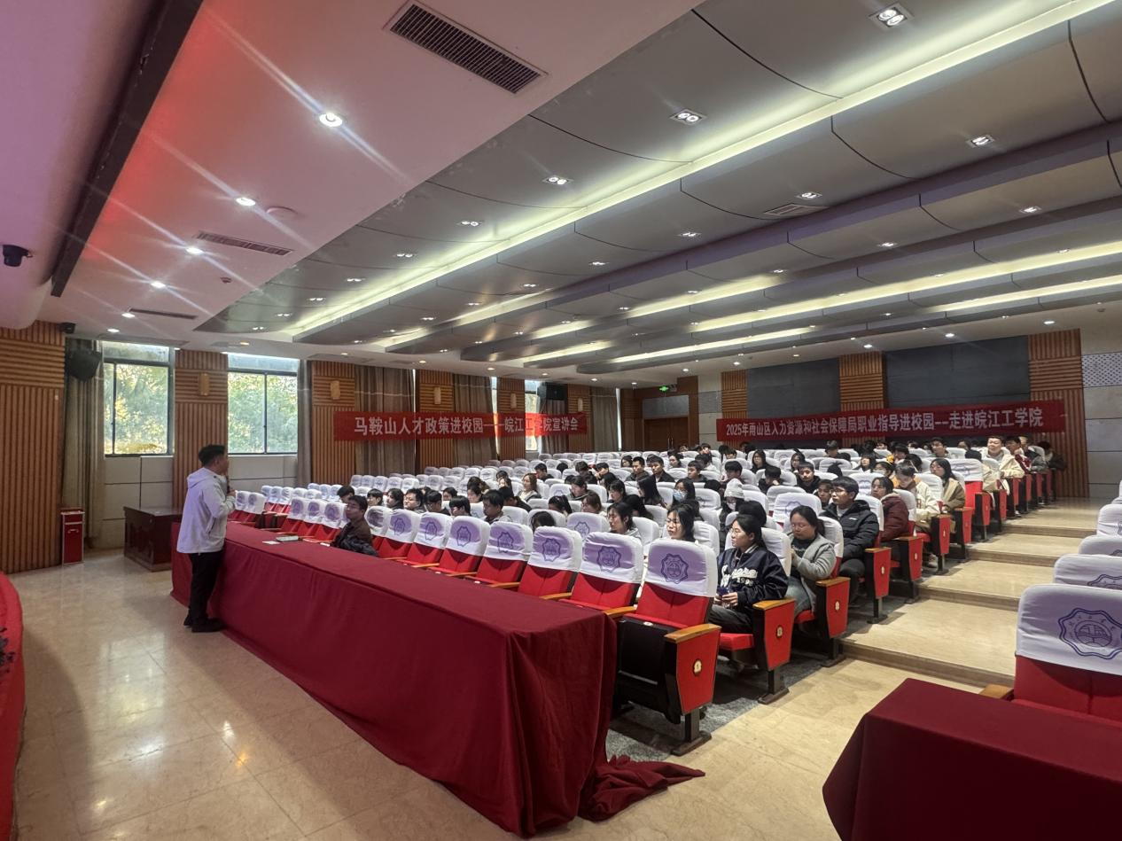为帮助大学生们提早谋划职业道路,解决职业生涯中的困惑,引导学生树立积极向上的就业观念。3月20日,马鞍山市雨山区人力资源和社会保障局2025年职业指导进校园活动在学校图书馆报告厅举办,现场吸引了300多名学生。