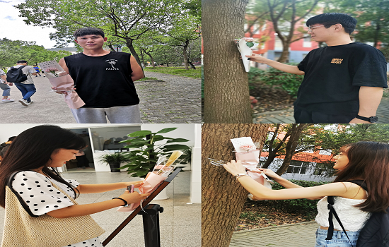 同学们亲手写上一句句简单而温馨的话语“献给最喜爱的老师,教师节快乐!”“老师,您好!老师,您辛苦了!”“十年树木百年人,老师恩情比海深”......一朵朵、一张张静候在教学楼、图书馆、水利楼、行政楼、操场边期待着过往同学取下的花朵和贺卡,献给自己最喜爱的老师,带去清晨的第一句节日问候。亲切的话语,幸福的笑脸,让今晨的校园洒满了同学们的祝福,充满了节日的温情!