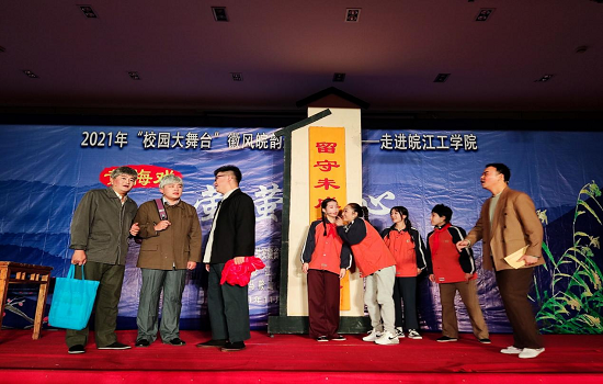 11月9日晚,由中共安徽省委宣传部、安徽省教育厅、安徽省文化和旅游厅主办的2021年“校园大舞台—徽风皖韵进校园”活动走进18新利怎样,学校百余名师生在图书馆报告厅观看了由马鞍山市艺术剧院带来的黄梅戏经典剧目《萤萤我心》。