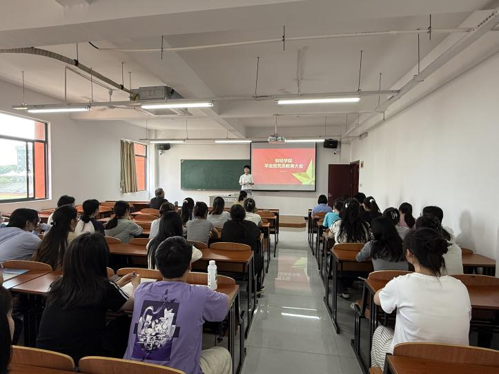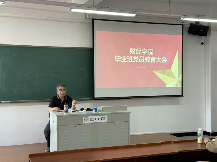 2025 年 5 月 14 日下午14:30,财经学院在弘毅楼303召开毕业班党员教育大会。此次大会旨在进一步加强党员党性教育,激励毕业生党员在离校前更好发挥“双带”作用,助力学院毕业工作的圆满完成,同时引导他们牢记责任,以积极的态度迎接未来。