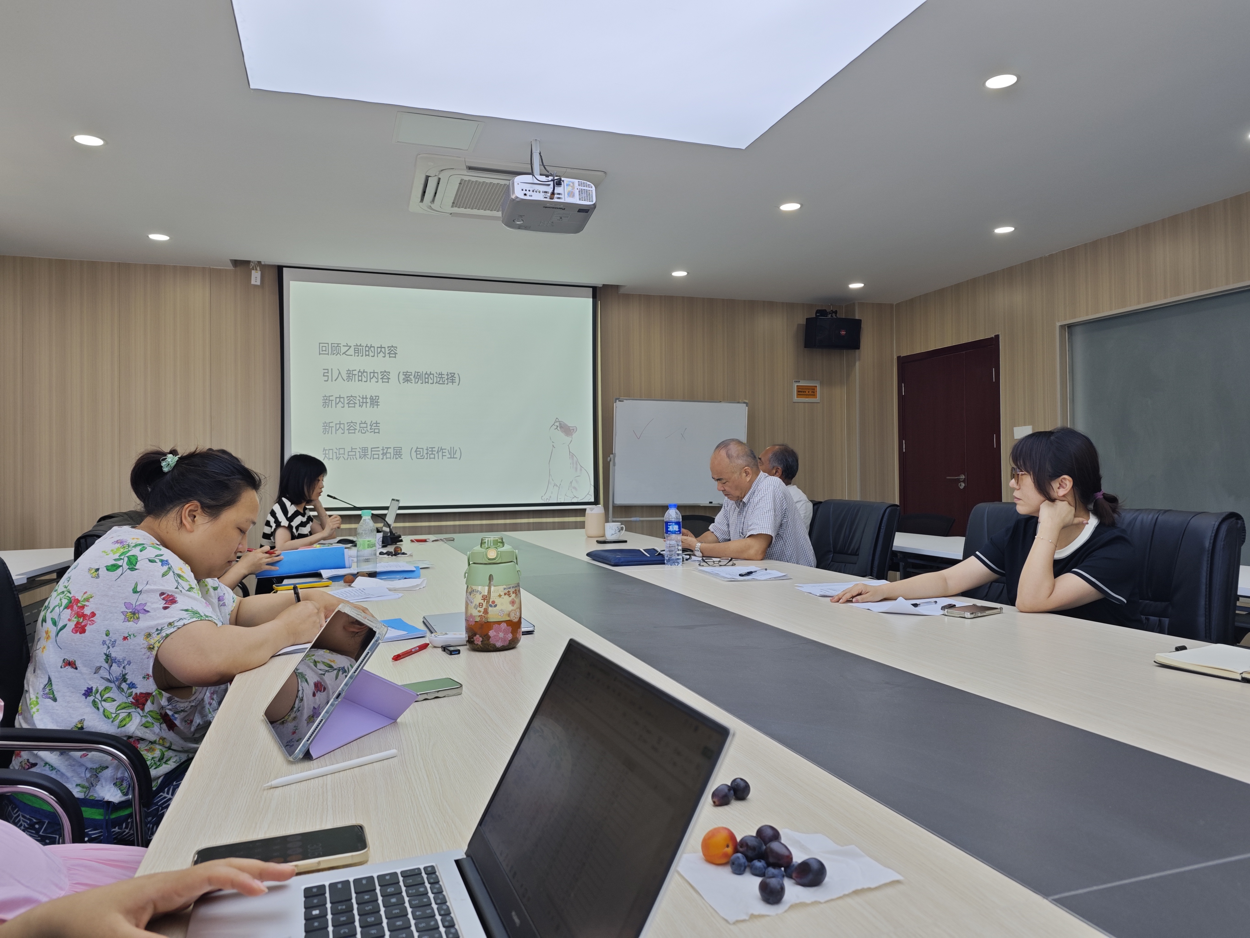 闻雯老师为新教师讲解了如何编写教案。对于教案的编写可以以课时或章节为单位编写,同时要区分教案与讲稿。另外还详细讲解了教案的基本要素,包括教学目标、教学内容、教学方法等。