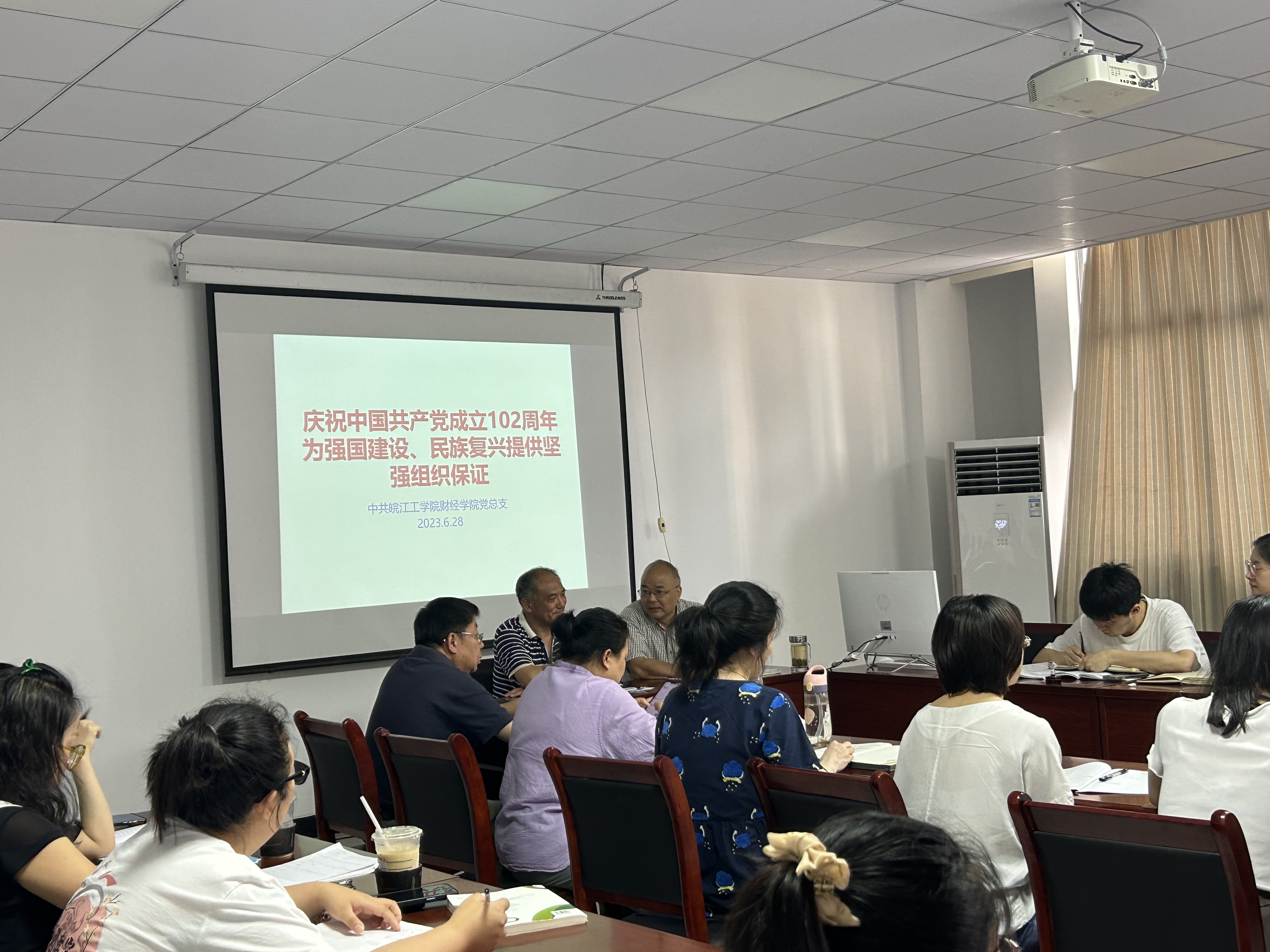 2023年6月28日下午,财经学院教工党支部举行“庆祝中国共产党成立102周年,为强国建设、民族复兴提供坚强组织保证”专题学习会,会议在S403会议室召开,学院领导和全体教师党员参加会议,会议由教工党支部书记裴钦主持。