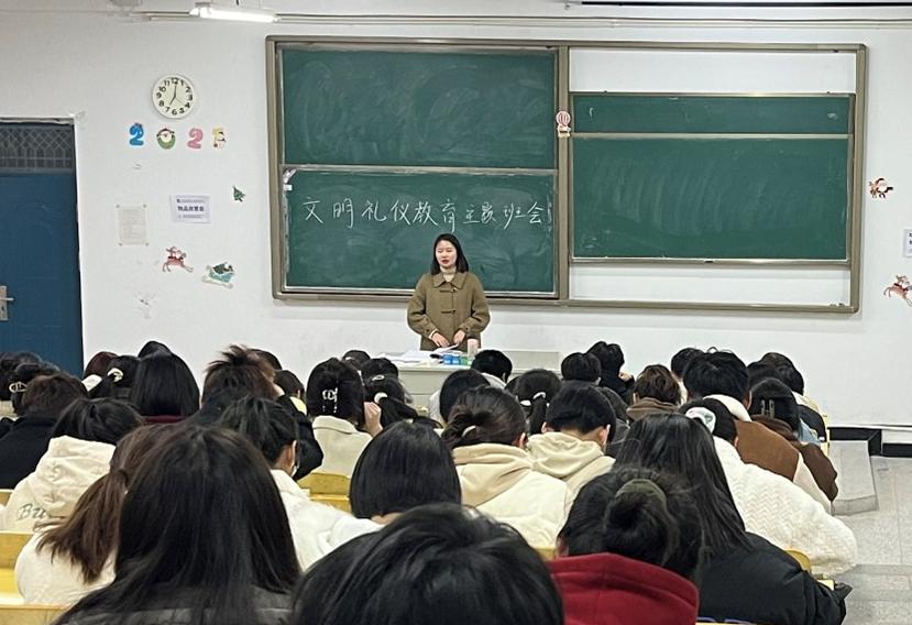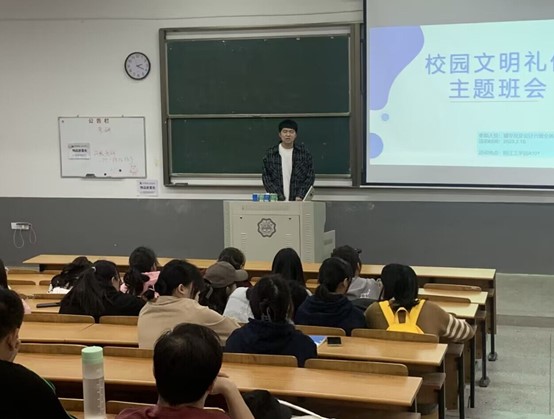 为规范个人行为习惯,提升大学生自身修养,进一步加强班级精神文明建设,构建积极向上、文明和谐的优良氛围,财经学院积极响应我校“文明礼仪伴我行”系列教育活动的开展,于近日在两个校区各专业开展“文明礼仪伴我行”主题班会。