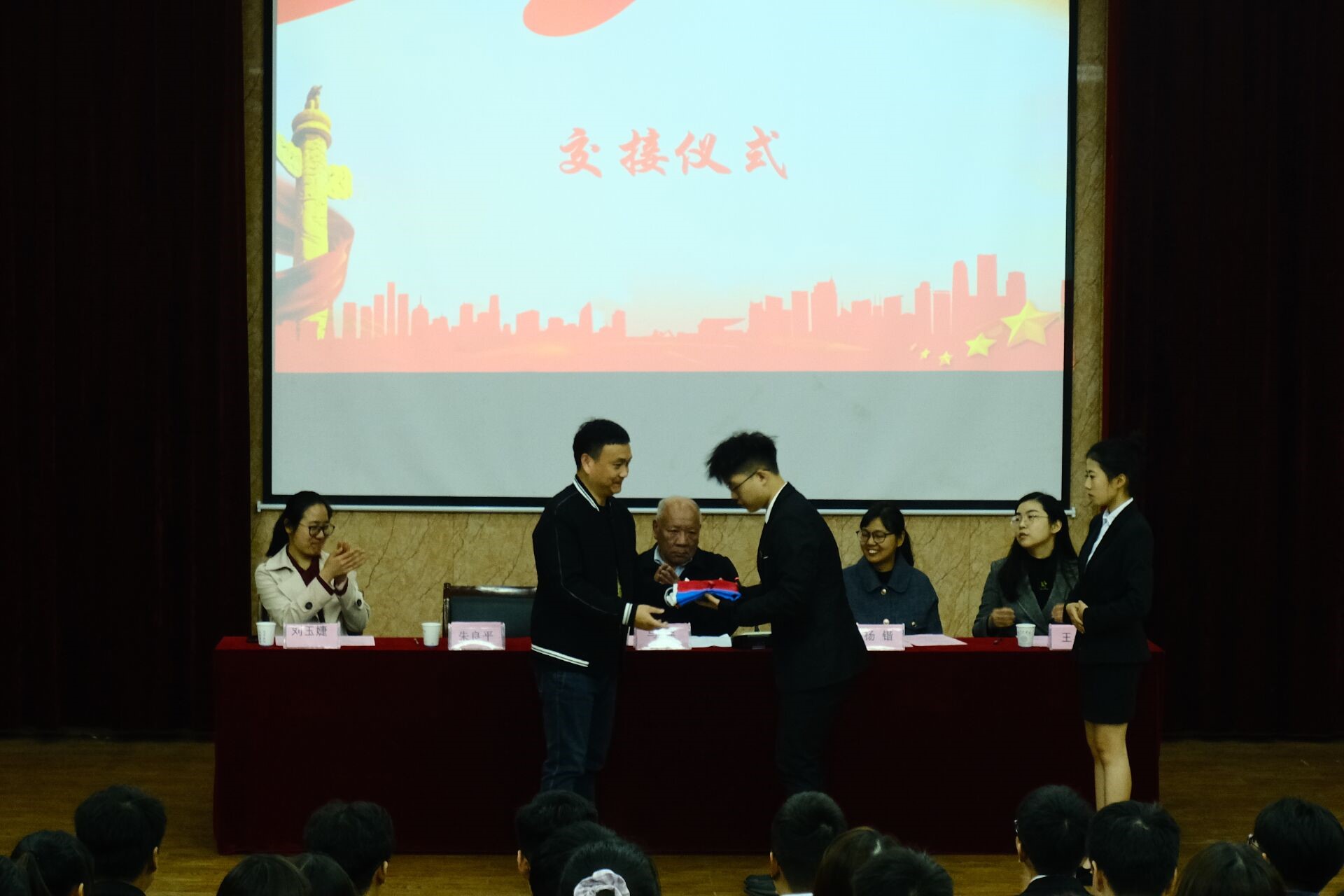 接着,由各位出席的领导给经管院第二届学生会干事代表、部长代表和主席团颁发聘书并合影留念。随后由杨锴老师、朱良平书记分别宣布第一届财经学院学生会和管理学院学生会正式成立并进行授旗授章仪式,由刘玉婕老师、王萍老师分别宣读第一届财经学院学生会和管理学院学生会主席团与部长级的任命名单。