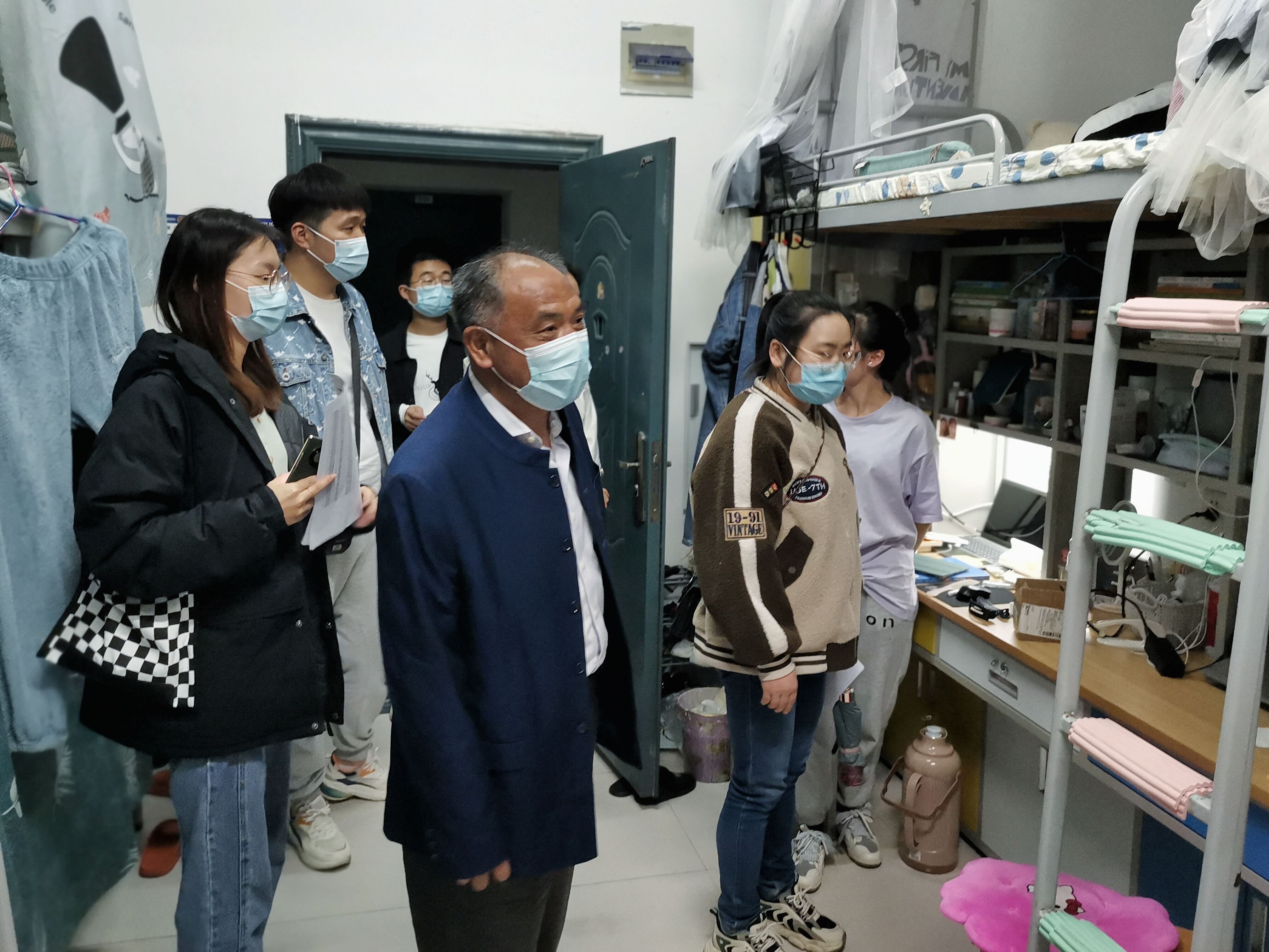 为继续加强疫情防控工作,打好疫情防控阻击战,规范学生宿舍内务标准,引导学生养成良好生活习惯,4月13日晚,财经学院院长徐德信带领全体辅导员赴13栋女生宿舍,检查学生宿舍防疫工作。