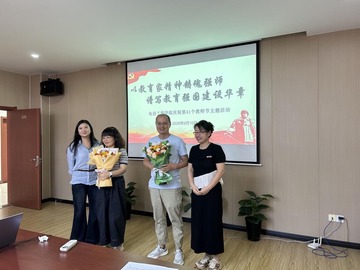 2025年9月10日下午,电信工程学院在敏行楼520会议室开展“以教育家精神铸魂强师,谱写教育强国建设华章”为主题的第41个教师节庆祝活动。学院全体教职工齐聚一堂,共庆节日。