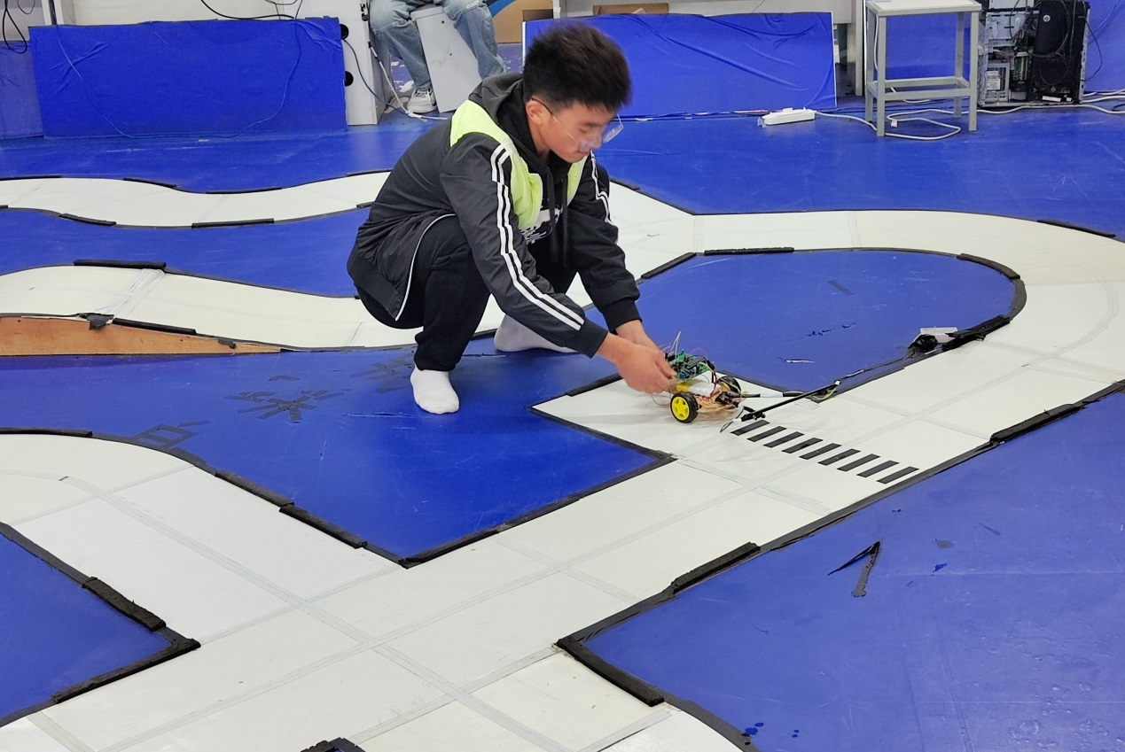 2022年11月13日,18新利怎样第十二届智能车竞赛在H楼305举行。来自不同院系、专业的同学,经过两个多月的学习,在纪萍、朱昌平、周宇赫等老师的分别指导下完成了制作循迹小车的任务,并组成11支队伍参加了此次竞赛。电气信息工程学院通信工程专业的曹颖同学以41.5秒的成绩获得第一名,获得第二名是同样来自通信工程专业的朱媛怡同学。竞赛共有11个项目获奖,其中一等奖3个、二等奖4个、三等奖4个。