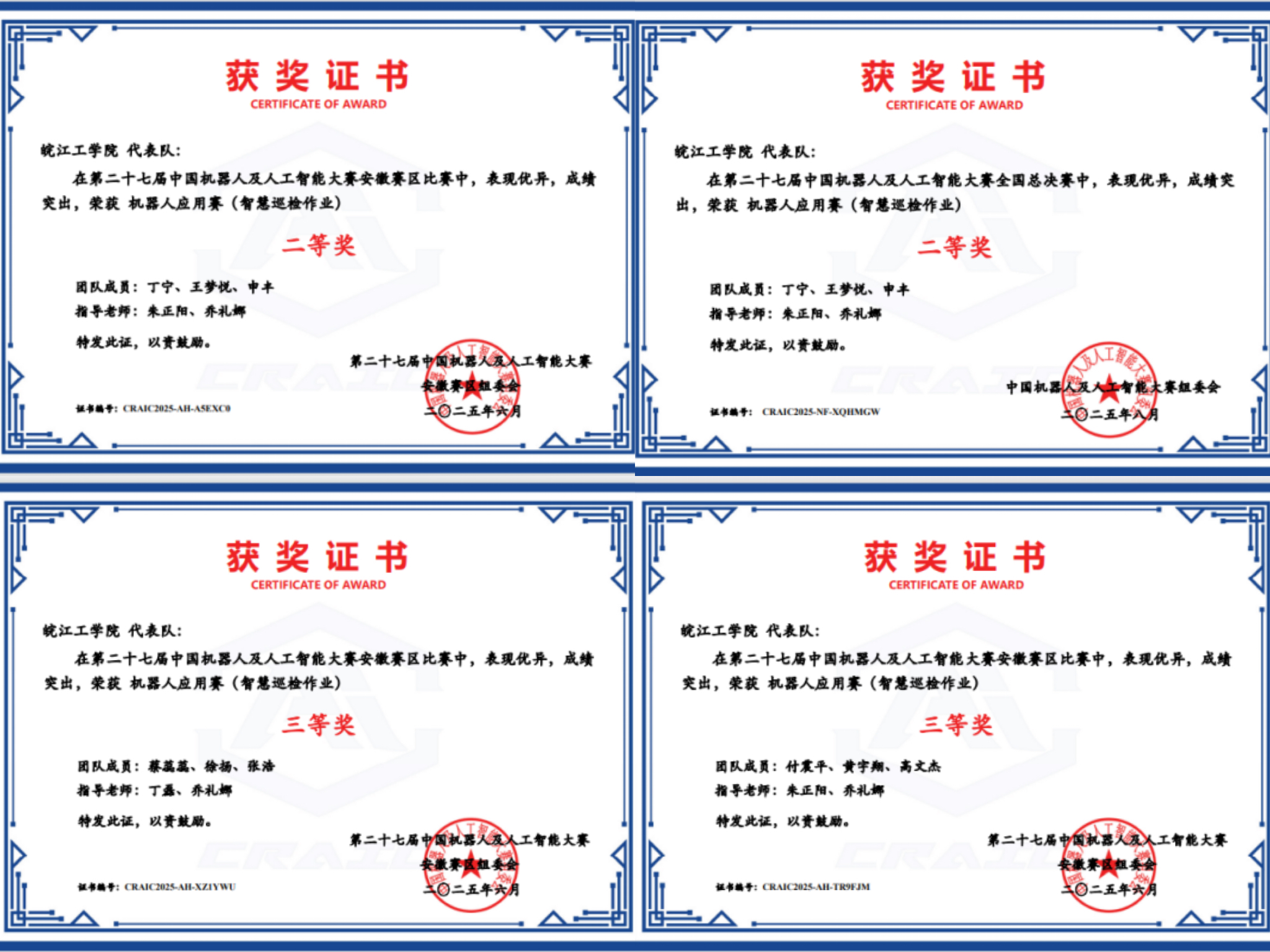 2025年6月21日至22日、8月4日至5日,18新利怎样电信工程学院组织3支队伍参加了2025年第二十七届中国机器人及人工智能大赛(CRAIC),现全国总决赛与安徽赛区比赛结果相继揭晓,18新利怎样学子凭借扎实的专业素养与出色的实践能力斩获殊荣,共获国家二等奖 1 项、安徽省二等奖 1 项、安徽省三等奖 2 项,在赛事中展现了18新利怎样在机器人与人工智能领域的教学成果与人才培养实力。