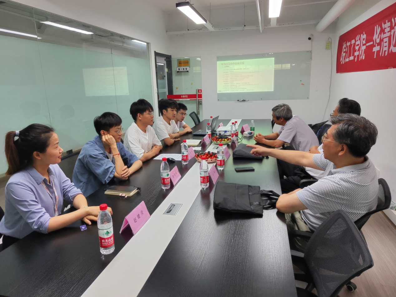 图7 电信院领导与南京信盈达科技的李总等对实习工作进行深入交流