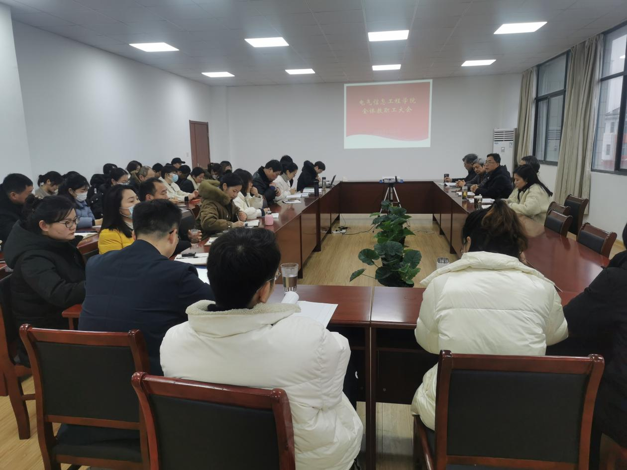 2月12日,电气信息工程学院在G520会议室召开2023年新学期全体教职工大会,重点传达学校2023年工作会议精神,部署新一年学院各项工作。电信院党政领导班子和全体教职工参加了会议,双创学院院长朱昌平应邀出席,会议由院总支书记杨安胜主持。