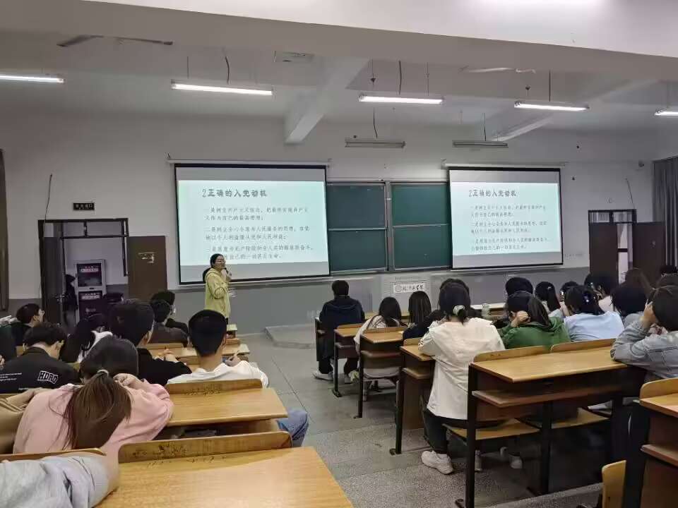 张高桢老师首先介绍了大学生入党的流程,入党流程的阶段性、严肃性和规范性,要求提高对党的认识,积极向党组织靠拢,听党话、跟党走;认真讲解了学院党组织结构,发展党员应具备的条件,发展党员的原则,合格党员的标准,指出大学生要端正入党动机,在政治、学习、工作和生活四个方面努力提升自己等。同时强调学生骨干要积极发挥模范带头作用,争取早日加入党组织。她的讲解让大家对入党的全过程有了基本的了解,为大家提供了努力的方向。