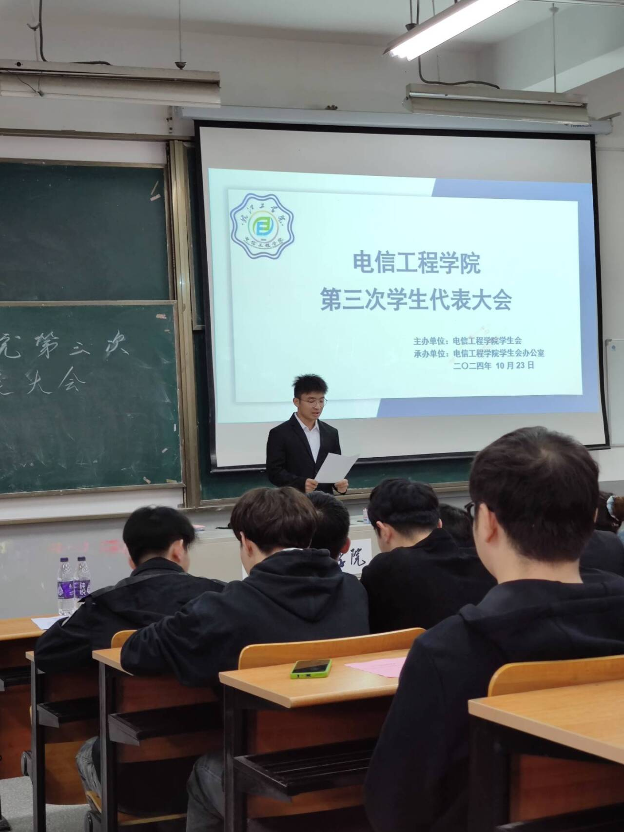 2024年10月23日电信工程学院第三次学生代表大会在B202教室顺利召开。学生代表大会由电信院分团委学生书记张智淘主持,22级、23级以及24电气专升本7个专业学生代表团队参会。