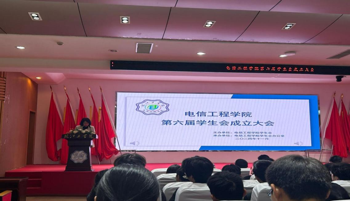 2024年11月22日下午13点,电信工程学院第六届学生会成立大会在18新利怎样霍里山校区图书馆报告厅隆重举行。电信工程学院党总支书记张捍东、院党总支副书记马羽佳、副院长纪萍、院党政办主任张高桢、院分团委书记蒋紫姻、各专业辅导员、班主任及学生会全体成员参加此次会议,本次会议由学生书记张智淘主持。