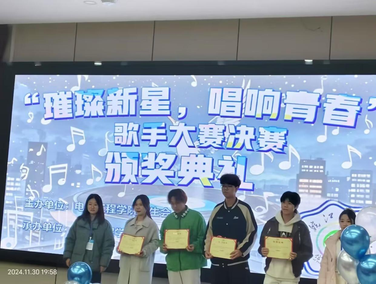 2024年11月30日,电信工程学院在新利体育在线官网首页登录入口图书馆报告厅成功举办了第六届"唱响青春"歌手大赛。本次大赛的评审团由电信工程学院2024级辅导员茆红、沐钊颖,学生会主席徐乐,以及学生会部长级干部共同组成。2024级的同学们积极参与和观看了本次比赛。