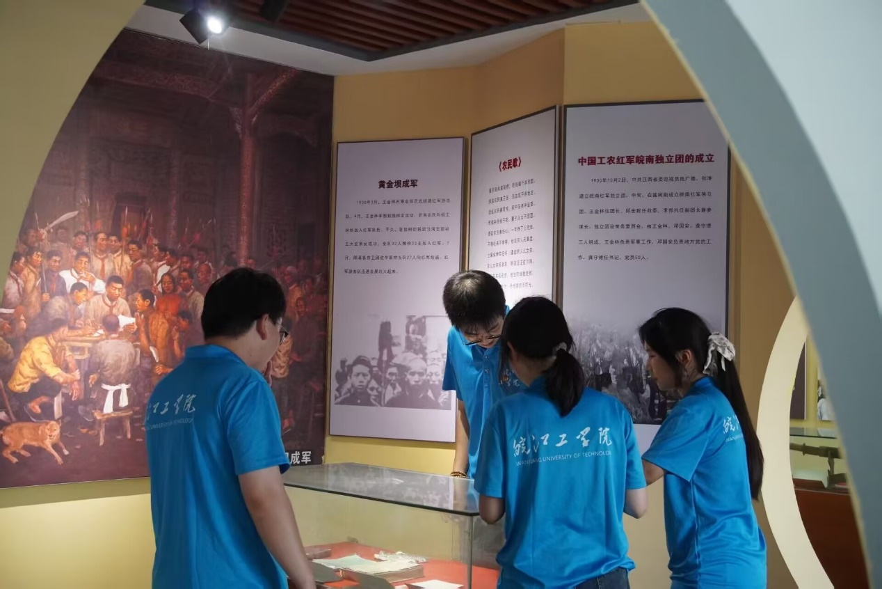 七一建党节当天,实践团走进英烈山,并前往皖南红军纪念馆。在纪念馆内,通过实物展览、场景复原等沉浸式体验,成员们重温红军在皖南地区的斗争历史,深刻理解“红色政权来之不易”。团队还现场组织普通话朗诵红色家书活动,用标准的普通话传递革命情怀,让红色故事“声”入人心。