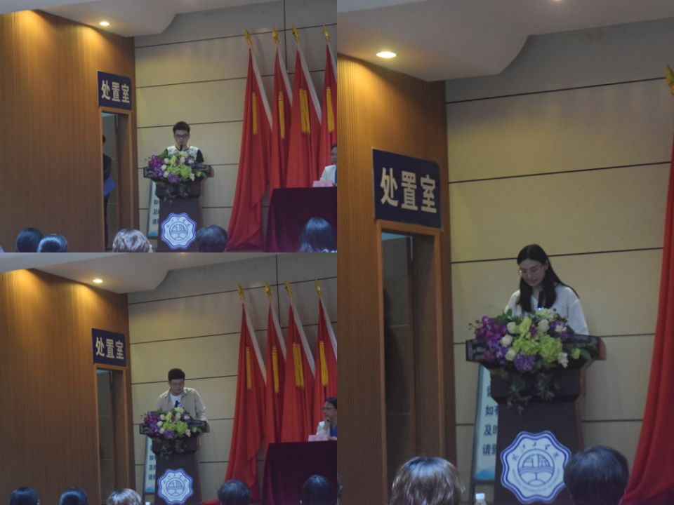 考取研究生的17级学生代表汪洋、正在准备考研的18级学生代表刘犇持以及我校18届优秀毕业生代表、已录取为南京大学博士生的吕欢欢(上海市2021届优秀毕业生)校友分别作了发言。他们结合自身考研的心路历程,分别从课程复习、学校选择和心态调整等方面给学弟学妹提出了宝贵的建议,并鼓励学弟学妹们在考研的路上坚持不懈,争取早日实现提升学识学历,在更高的平台上报效祖国,助力实现“两个百年”中华民族复兴的梦想。