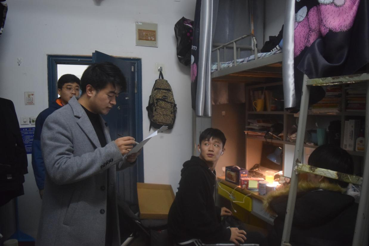 本次检查由党总支牵头,党总支副书记马羽佳、学工办副主任孙伟,率19、20级辅导员进行。