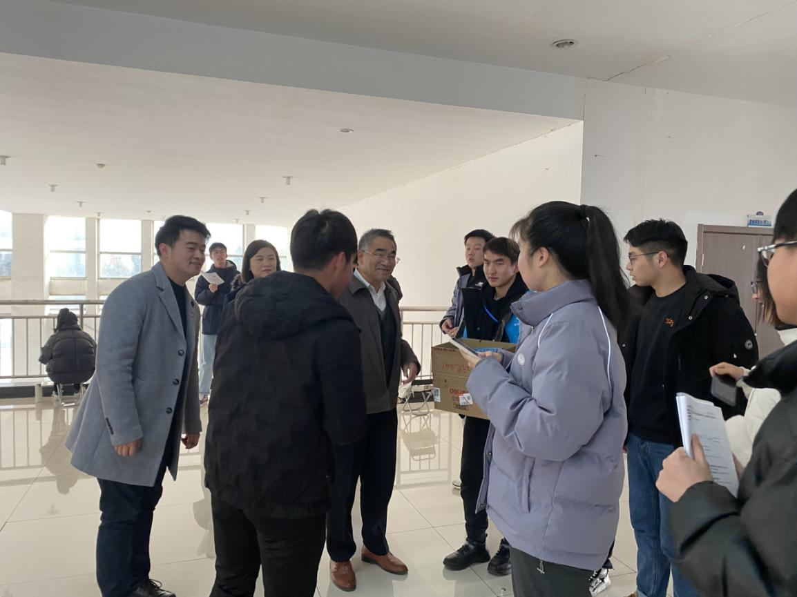 杨安胜亲切的询问同学们的学习情况,并提醒同学们在努力备考的同时,一定要照顾好自己的身体,他风趣的说道“身体棒,才能打硬仗”!随后,他将精心准备的“考研礼包”亲自送到了学生的手里。“考研礼包”虽小,可它代表着全院教职员工希望,学弟学妹们贴心的祝福语,一笔一划更让这个礼包满含能量和温情。