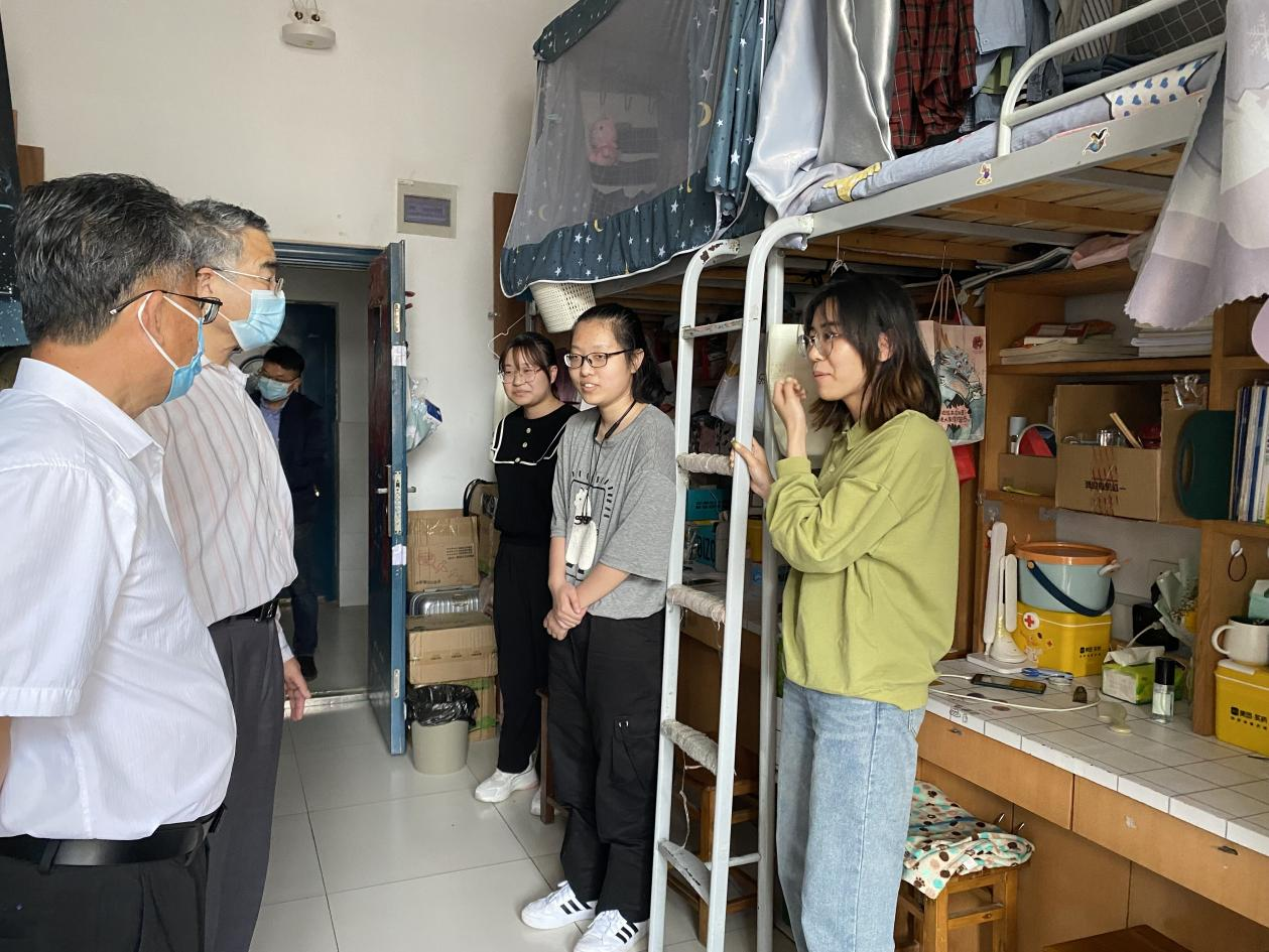 走访中并对同学们提出期望:疫情期间,希望大家加强自我管理,保持整洁有序的宿舍环境。养成健康文明、积极向上的生活习惯,保持阳光开朗、积极向上的良好心态。大学时光弥足珍贵,希望大家都能珍惜当下,充分利用课余时间开展各种有益身心健康的科研、文体活动,“白日不到处,青春恰自来。苔花如米小,也学牡丹开。”清人袁枚的小诗《苔》,正是个人为梦想默默努力、为时代奋勇拼搏的精神写照。收起“吃喝玩乐过四年”的颓废,把自己融入奋进的潮流中,在奋斗中创造价值、收获幸福,每一个年轻人都会迎来属于自己的新时代——奋斗者的时代。