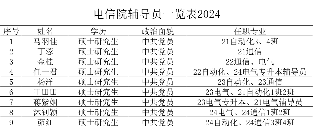电信院辅导员一览表2024