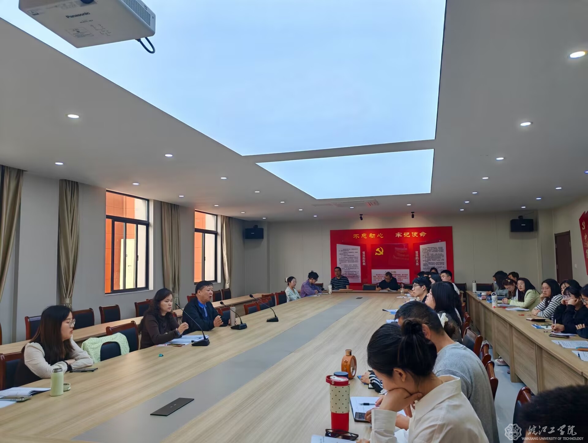 2025年4月16日下午,通识教育学院在弘毅楼310会议室召开通识教育学院党总支全体党员大会。会议由副校长、学院党总支书记侯进元主持,全体党员教师参加此次会议。