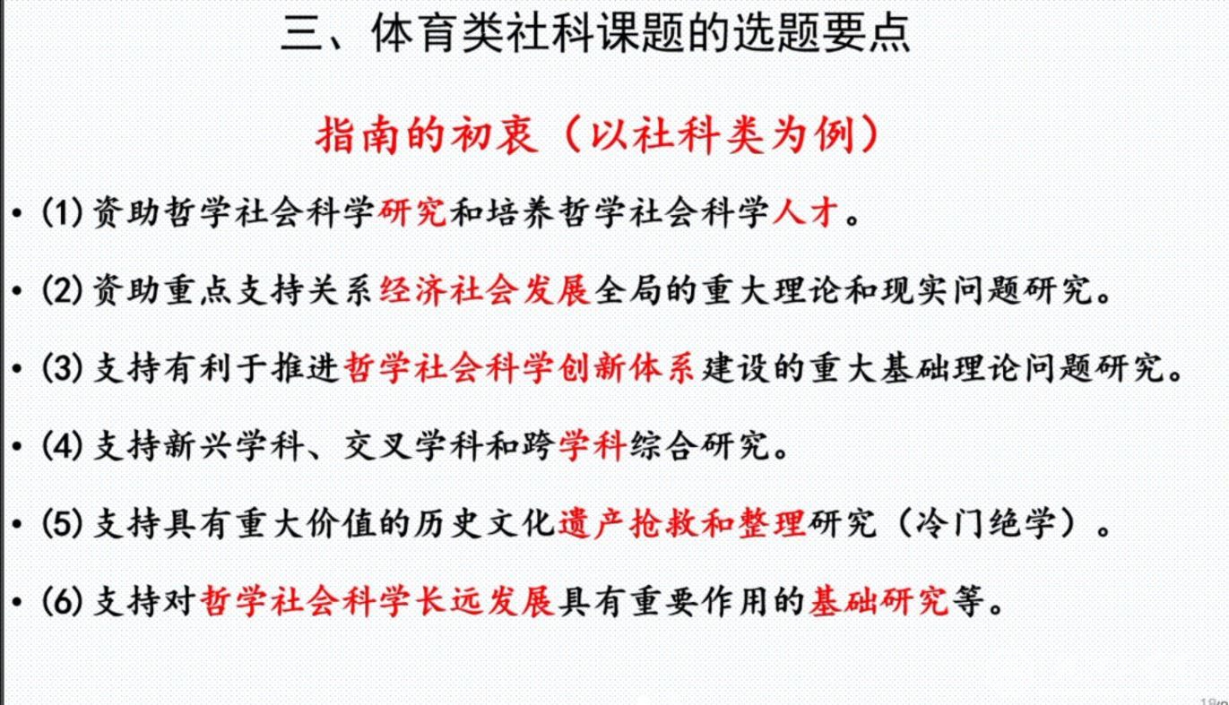 学术报告会上,崔运坤教授从体育类社科课题的意义、类型、选题要点、课题设计论证、基础保障等几个方面为大家详细阐述了体育社科类课题申报的要点、流程和注意事项。在申报书的撰写方面,崔运坤着重指出务必重视的几点:1)申报课题五个要素要强化问题性、凸显创新性、具备前瞻性、遵循科学性;2)选题要紧跟学术前沿,与时俱进;3)题目拟定要高度凝练,直奔主题,核心内容一览无余。崔运坤号召大家要多看、多听、多想,认真研究问题,巧妙的从不同侧重点进行研究,突出地方性、民族性和学科特点。