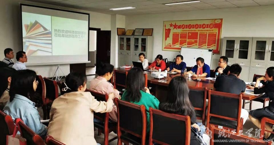吴云标首先对胡刚部长和吴毓老师的到来表示热烈欢迎,指出在学校进入内涵发展阶段,科研工作对于教师有极其重要的意义。胡刚就如何做好科研谈了自己的四点意见:1、在教学科研并重的时期,教师必须做好科研,这对于提高学校的排名有重要意义。科技部为全体教师的科研工作做了大量工作,创造不少有利条件。2、鉴于基础部各学科的特殊性,胡刚建议以专业为基础,结合社会热点和学校校本特色,拓展科研领域。例如数学专业和人工智能、区块链相结合容易产出高质量成果。3、不能太急功近利,要沉下心来做研究。4、学校有各层面的课题助力教师科研和成长。基础部教师提出了不少与科研相关的问题,如年度科研考核、发明专利申报等,胡刚一一耐心解答,吴毓老师详细介绍学校的各项科技政策。