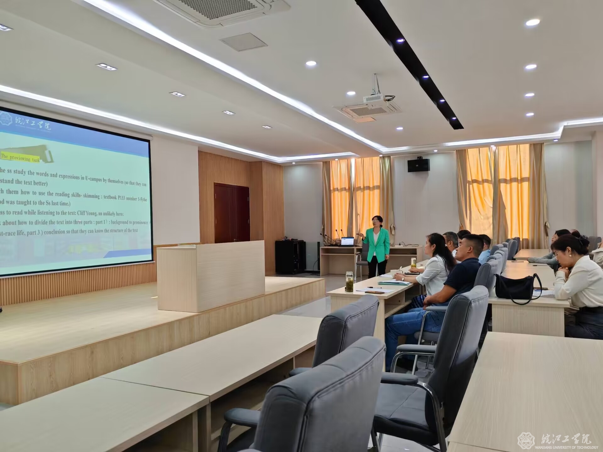 参加比赛的七位教师赛前均做了精心准备,向评委们充分展示教学思路、教学基本功和教学能力。朱婷老师在讲解熵时,从日常生活中的能量图引入了“熵”的概念,最后过渡到热力学的第二定律,浅显易懂。李松老师在讲解曲边梯形面积的时候,结合土地是农民生存的根本,在测量土地面积的时候,运用以直代曲近似求和的思想引出定积分的概念,不仅传授了语言知识点,而且让同学们明白了土地的可贵,培养学生热爱和平的思想。