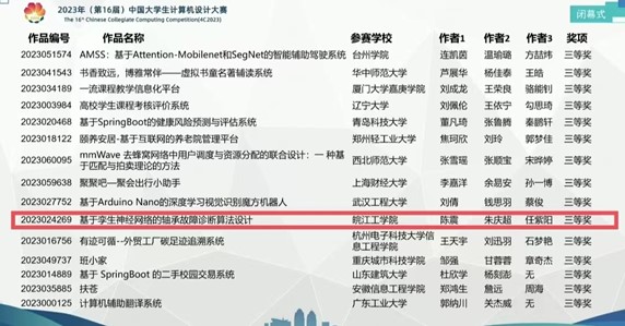 7月22日至26日,2023年(第16届)中国大学生计算机设计大赛全国总决赛在烟台成功举行。在王子、韩静老师的指导下,我校计算机科学与技术专业的学生陈震、朱庆超、任紫阳的参赛作品喜获国家级三等奖。