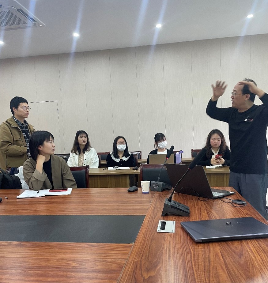 讲座最后,胡钢教授介绍了他在复杂网络与复杂系统学术研究上的基本观点逻辑框架,并与在场的老师进行了深入的学术交流。交流过程中,胡钢教授分享了他的求学与学术研究历程,语重心长地告诫大家,在学术研究中应摒弃功利心态,要保持健康的身体、愉悦的心情。他指出,只要找准了研究方向并专心投入,就一定会有研究成果。整场讲座内容丰富、信息量大,老师们纷纷表示受益匪浅。