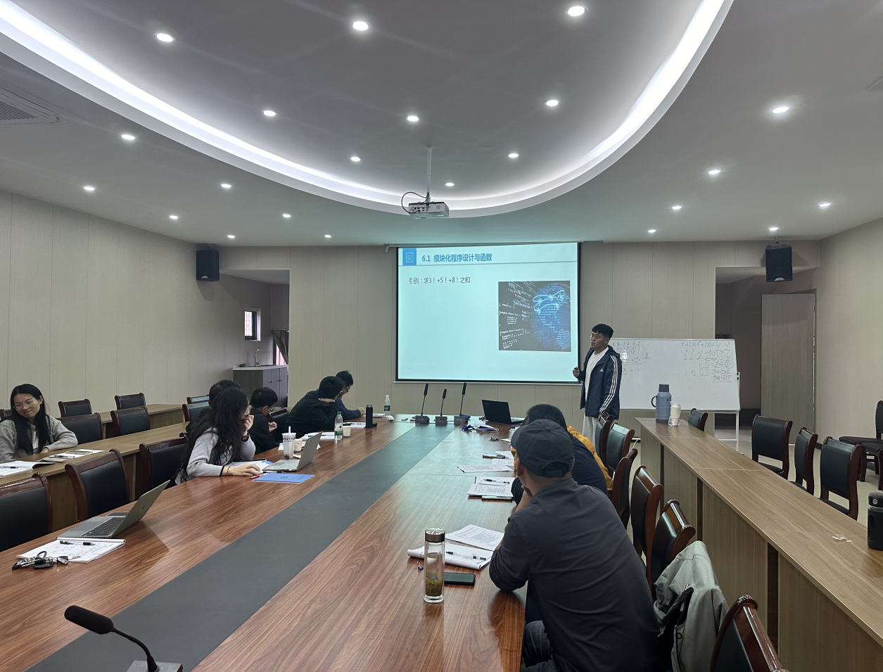为进一步提升专任教师的教学水平和业务能力,推动教学质量全面提升,计算机与人工智能学院计算机科学与技术教研室于10月16日下午在至善楼5楼会议室组织了一场教师教学能力再提升的磨课活动。这次活动旨在通过集体研讨、教学展示和评委点评等形式,帮助青年教师在教学设计、课堂组织和教学效果等方面实现提升,夯实教学工作基础,确保教学质量进一步提升。活动由计算机专业教研室主任张利庭主持,教研室全体教师参加了观摩与研讨。