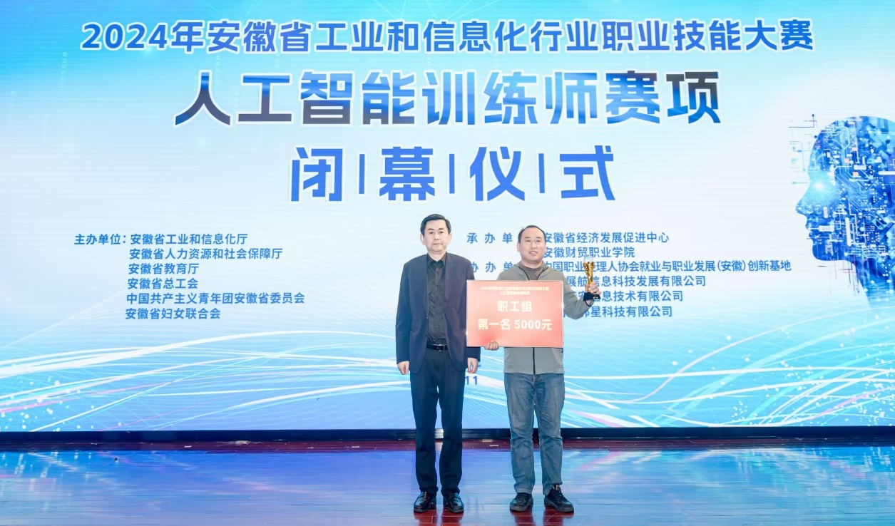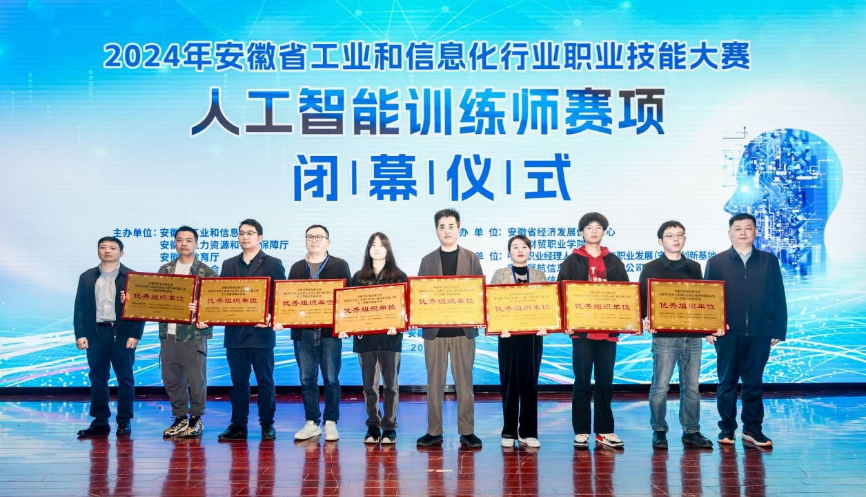 11月9日-10日,2024年安徽省工业和信息化行业职业技能大赛人工智能训练师赛项在安徽财贸职业学院隆重举行,我校计算机与人工智能学院、电信工程学院的教师团队在此次赛项职工组中表现出色、荣获佳绩,获得一等奖1项、二等奖1项、三等奖9项,获得“优秀组织单位”荣誉称号。