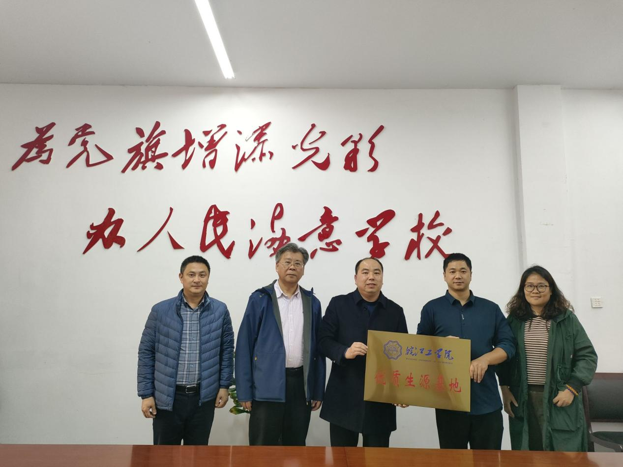 为进一步加强与中学的深度合作,持续提升我校生源质量,11月5日,计算机与人工智能学院院长胡徐胜、党总支书记王平、党总支副书记韦晨珺娃以及学校招生办公室副主任曹杨阳一行赴蚌埠市固镇县毛钽厂实验中学举行“优质生源基地”授牌仪式。